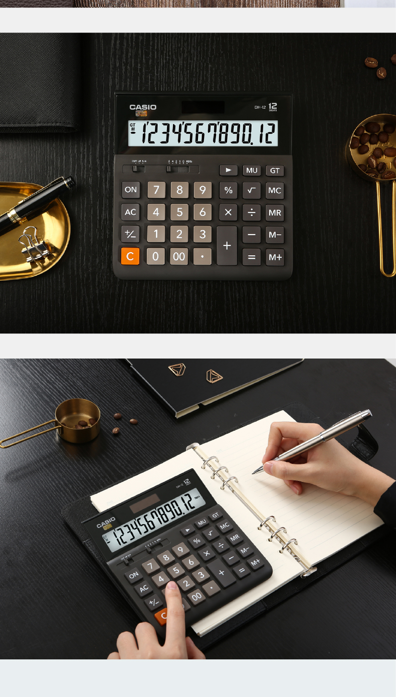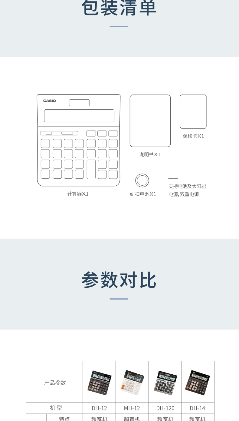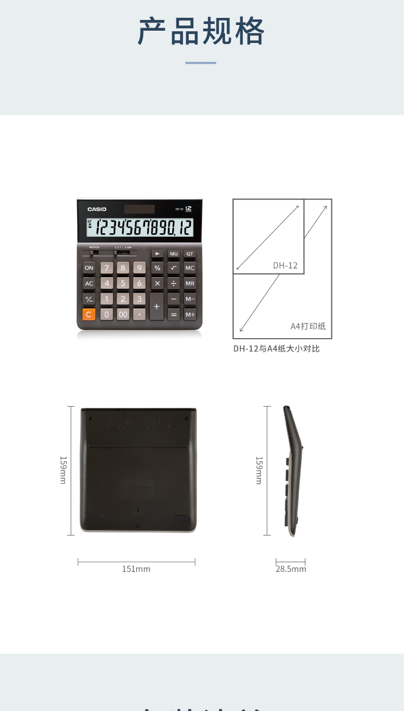 卡西欧(CASIO)DH-12-WE中型12位双电源超宽计算器白色专业计算系列 自营