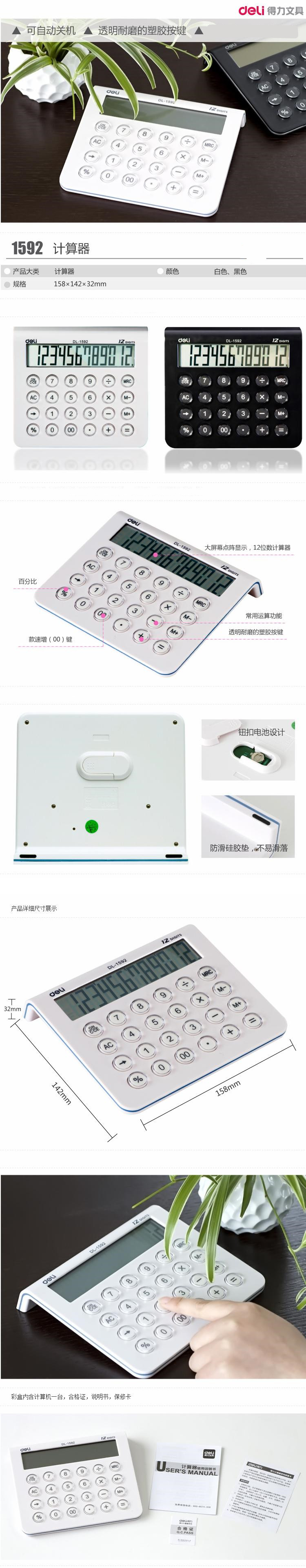 得力1592计算器黑白双色桌面型计算器琥珀按键计算机颜色随机 自营