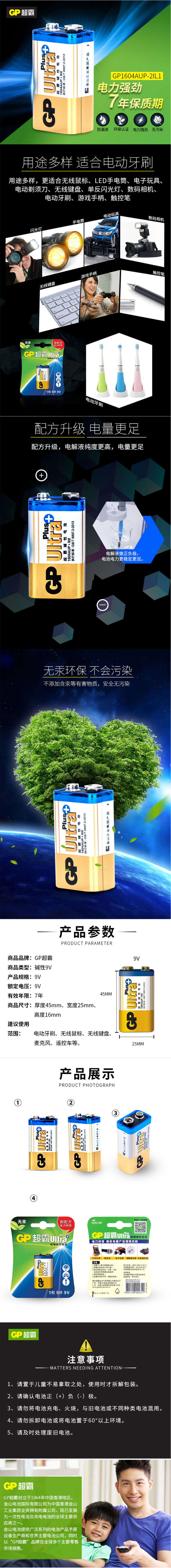 超霸(GP)GP1604A-L1碱性电池9V 自营
