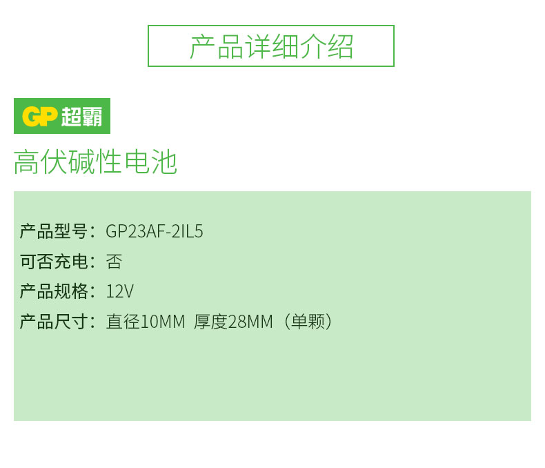超霸GP23A碱性电池23A/12V5节/卡 自营