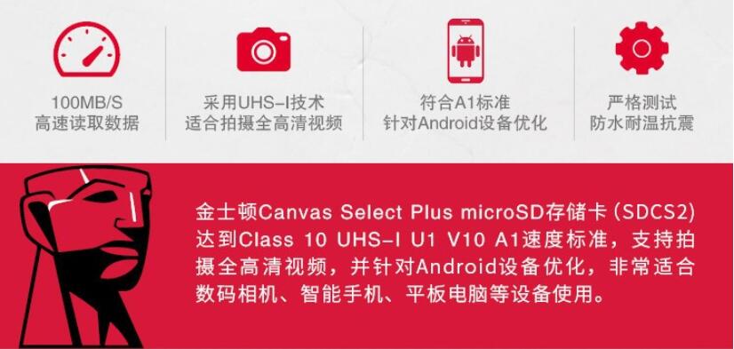 金士顿(Kingston)行车记录仪内存卡高速TF(MicroSD)无人机监控手机U1存储卡100M/sSDCS232G 自营