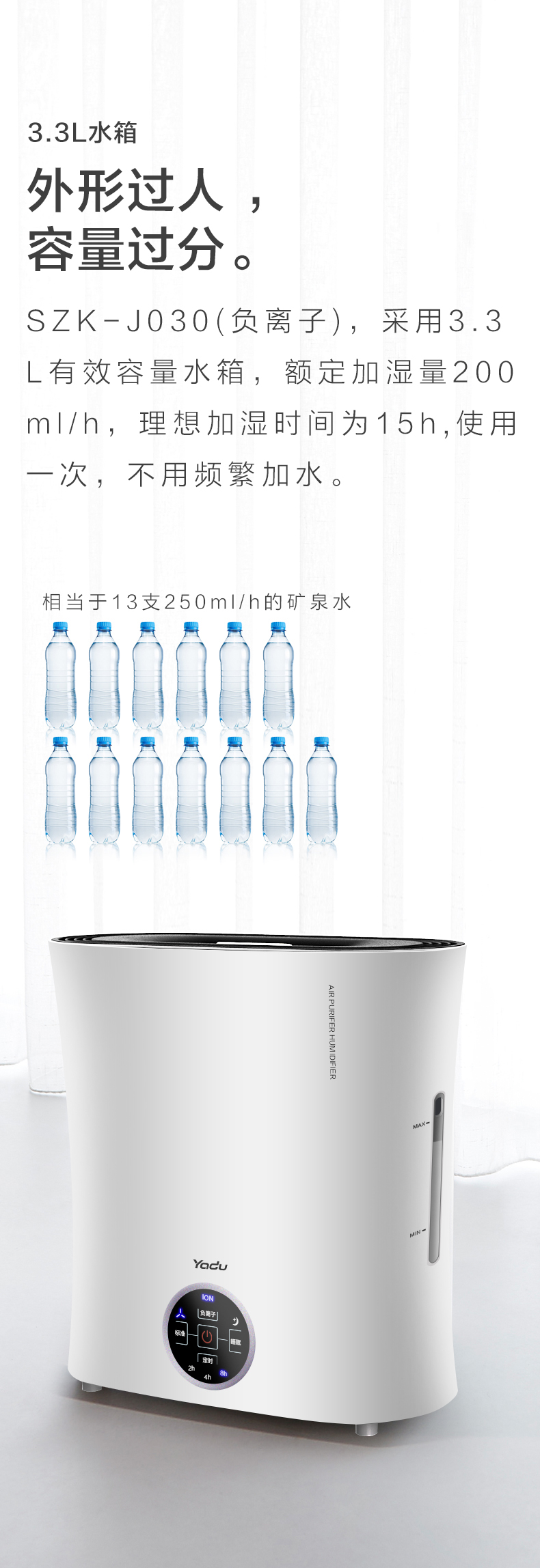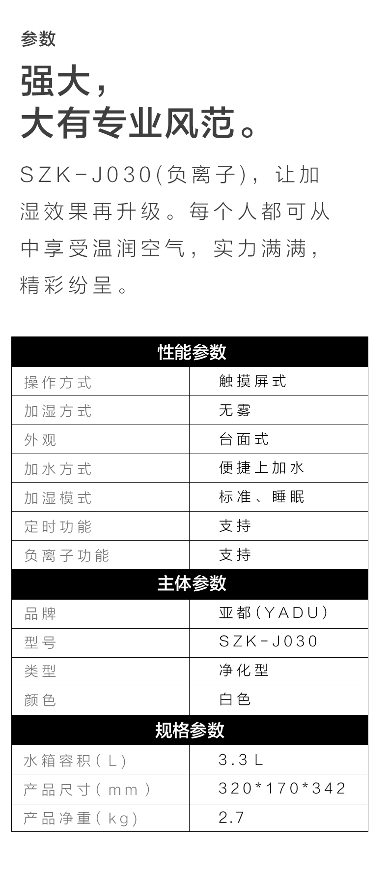 亚都(YADU)SZK-J030加湿器3L上加水无雾净化型 自营