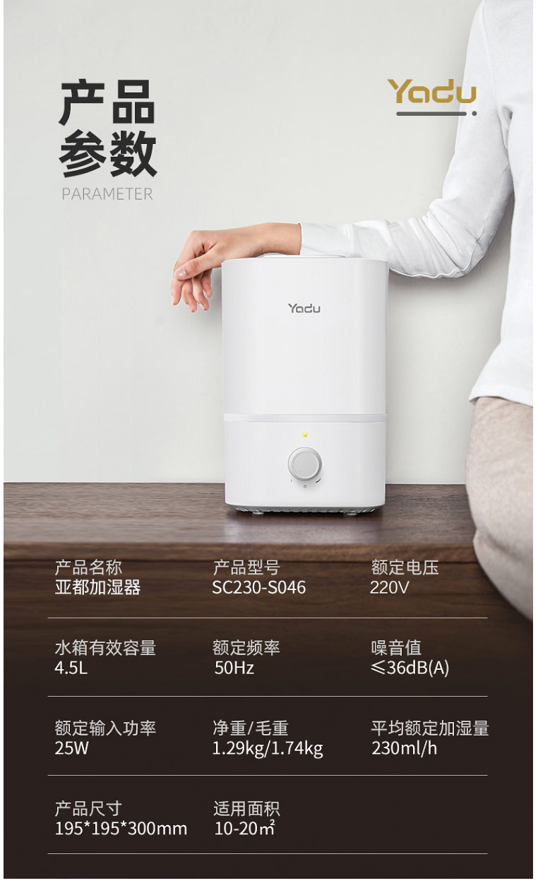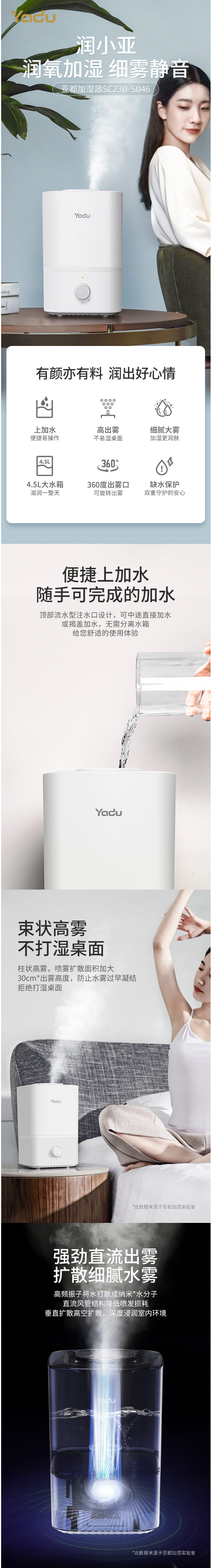亚都(YADU)SC230-S046加湿器上加水4.5L强劲高喷雾静音母婴可用卧室办公家用空气加湿器 自营