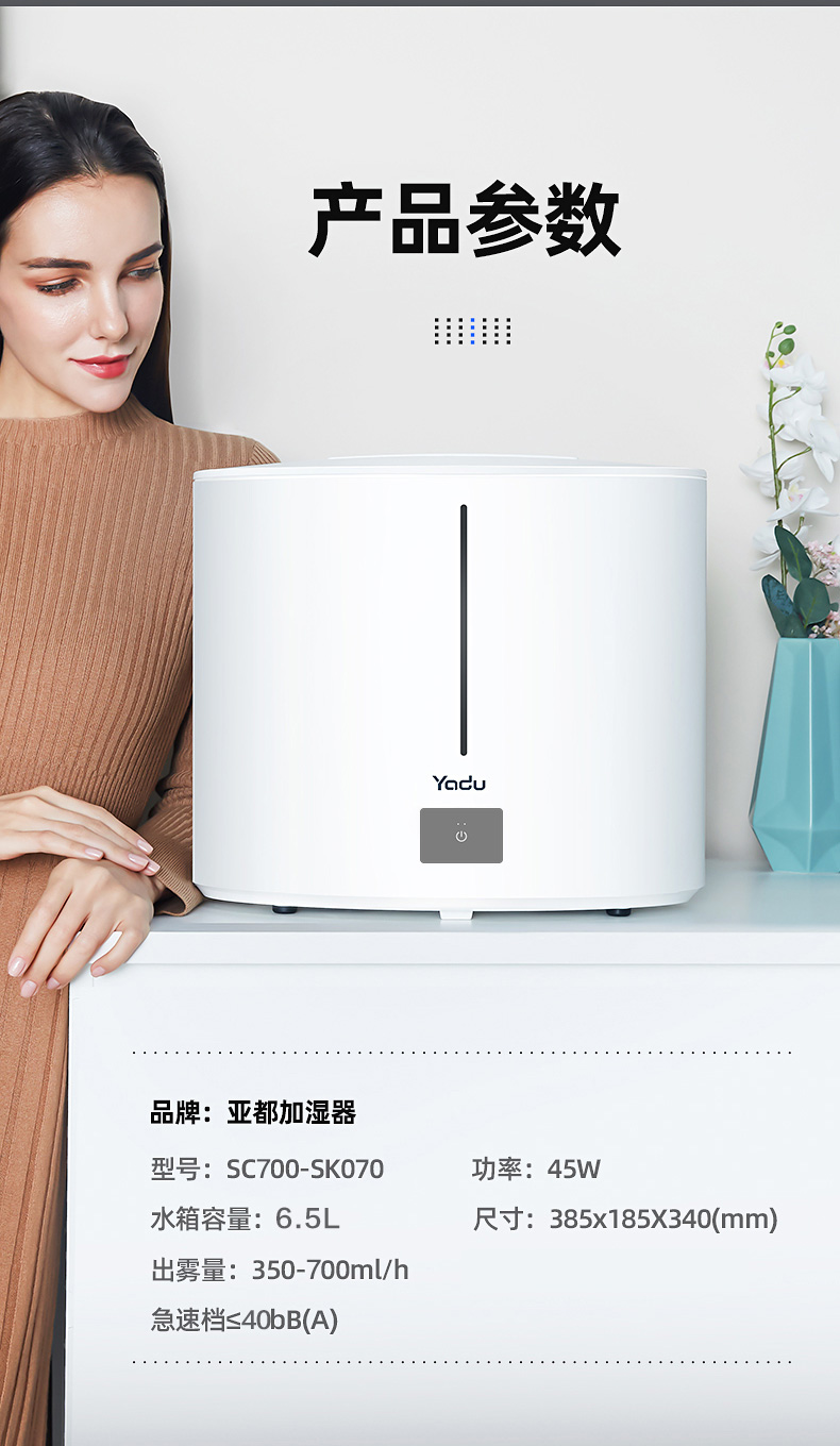 亚都(YADU)SC700-S070加湿器上加水雾暮景观设计双核大雾量一键触控卧室家用空气加湿器 自营