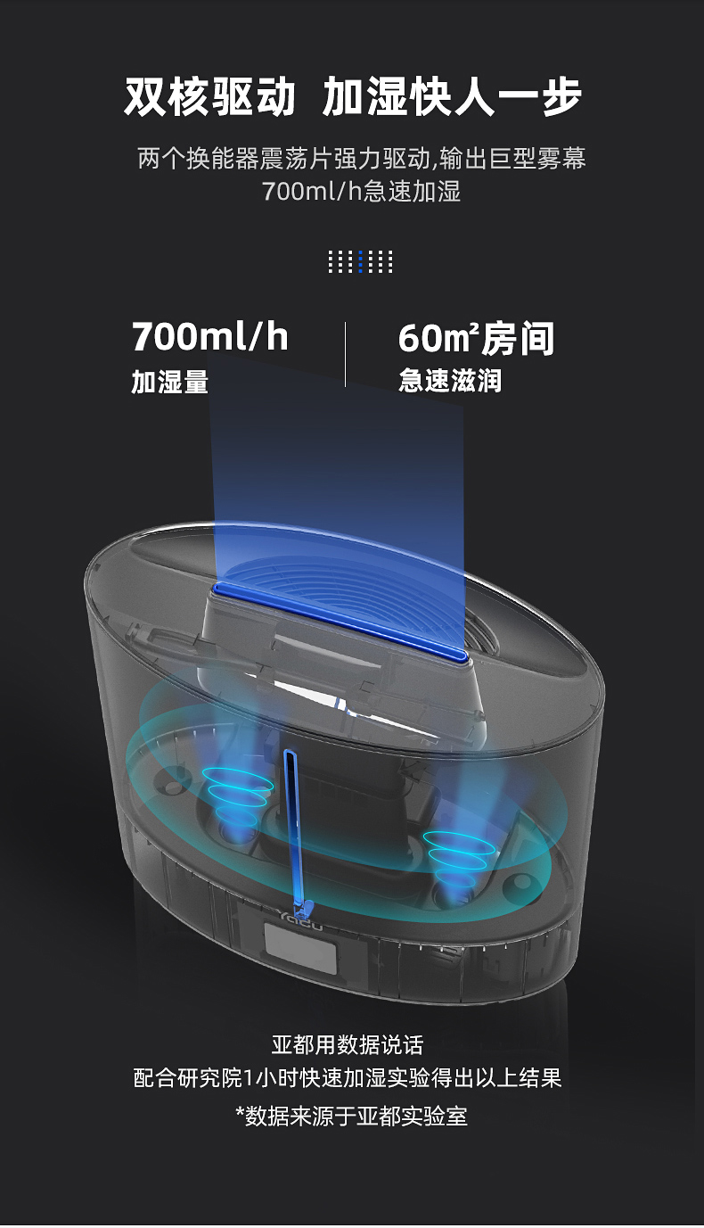 亚都(YADU)SC700-S070加湿器上加水雾暮景观设计双核大雾量一键触控卧室家用空气加湿器 自营