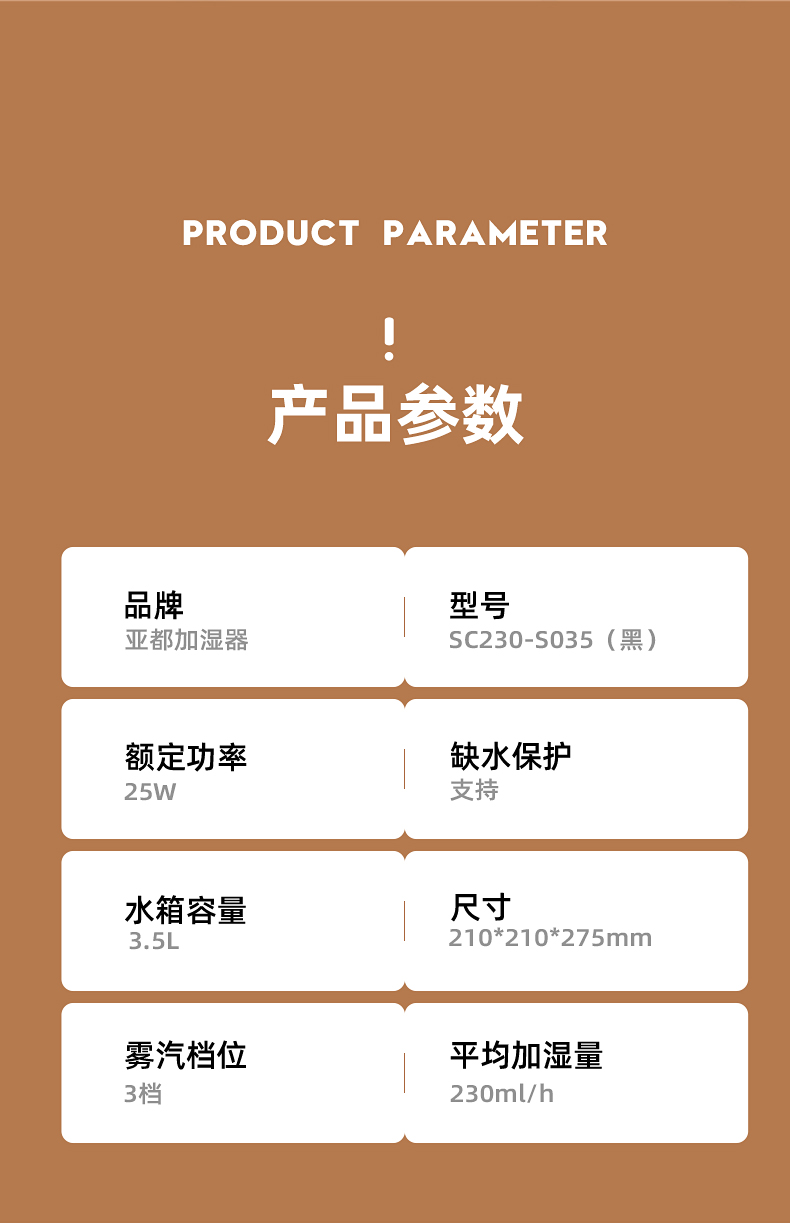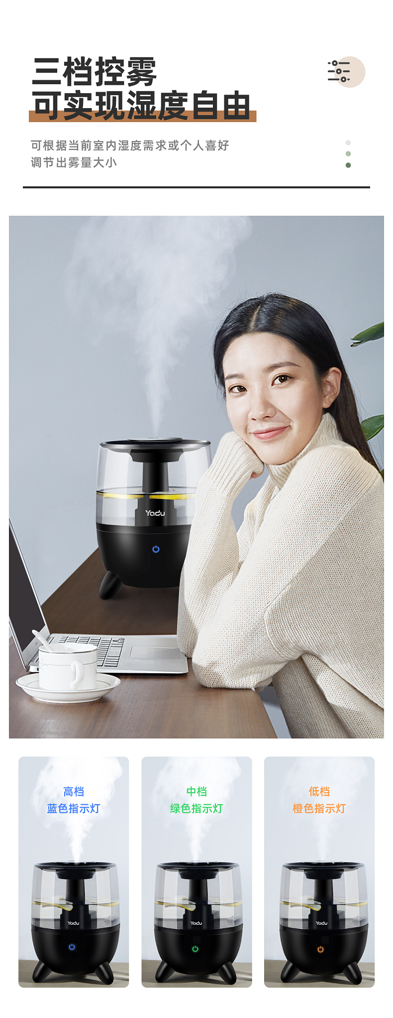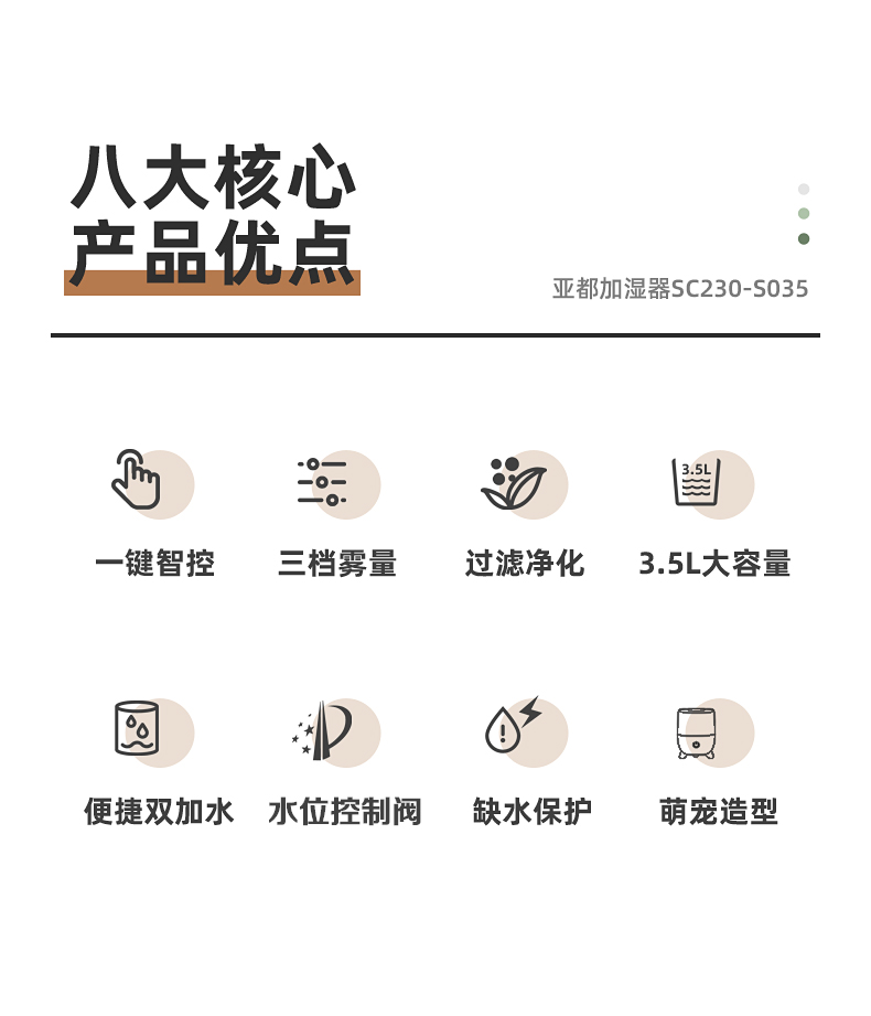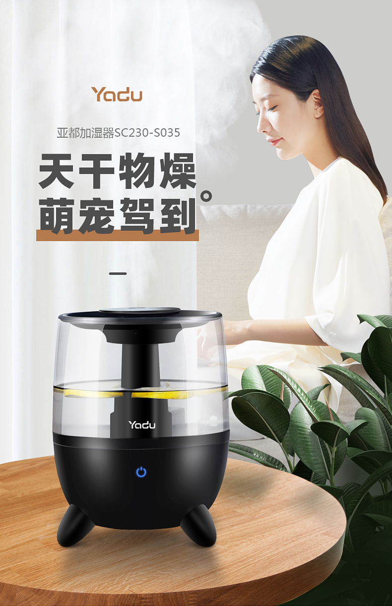 亚都(YADU)SC230-S035加湿器卧室静音大雾量过滤加湿上加水3.5升卧室孕妇婴儿家用触控加湿器黑色 自营