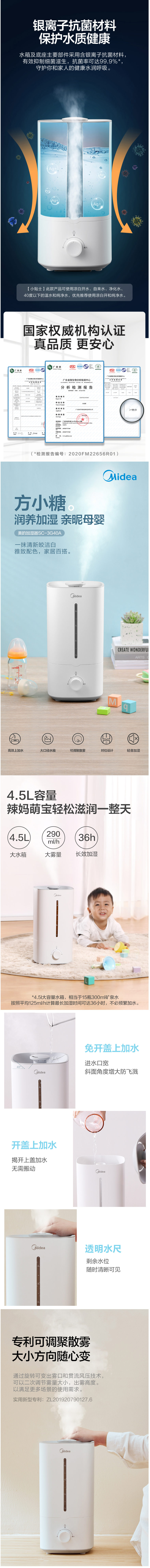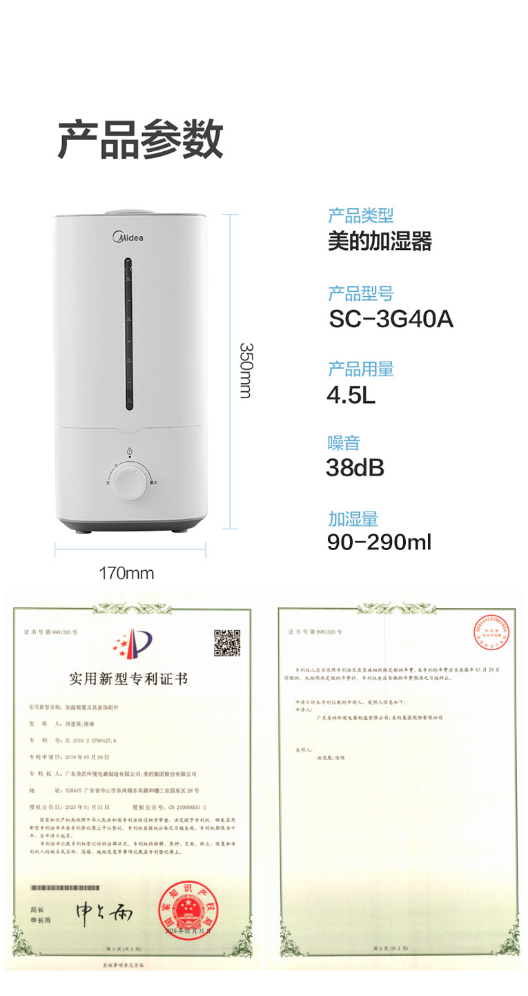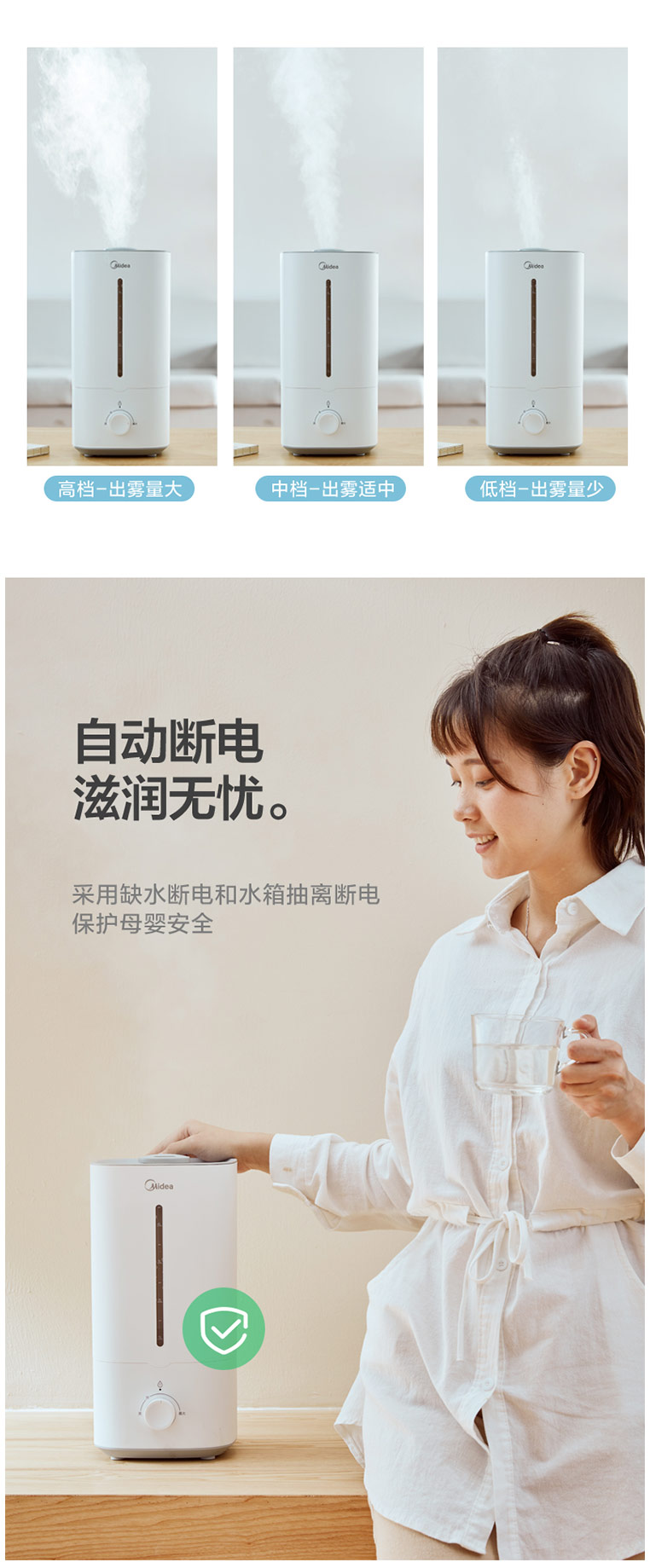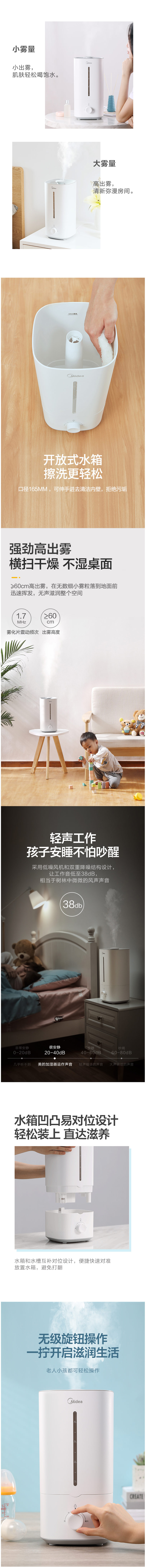 美的(Midea)SC-3G40A空气加湿器卧室办公室轻音加湿补水 自营