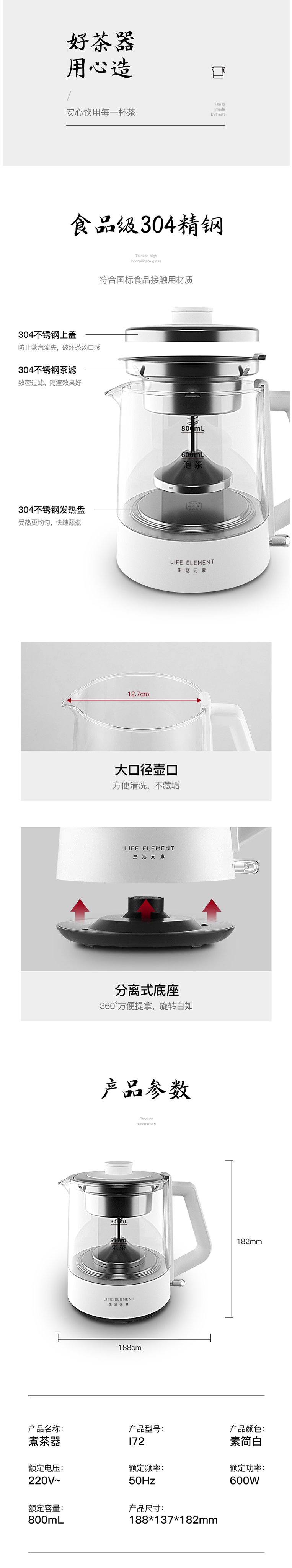 生活元素(LIFEELEMENT)I72.8L养生壶迷你煮茶器蒸汽喷淋式煮茶壶电热水壶养生杯 自营