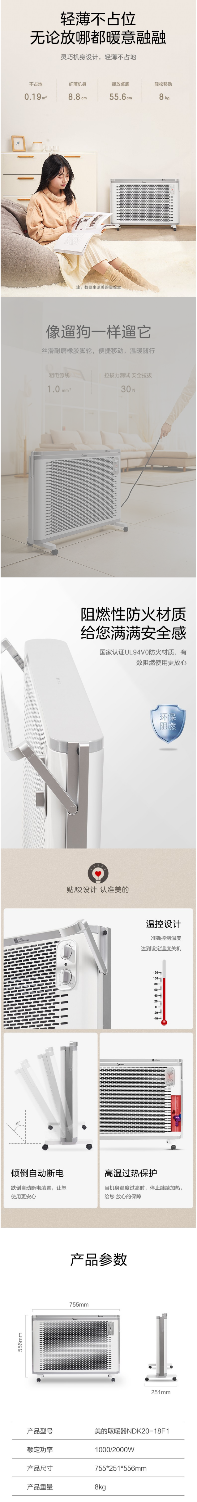 美的(Midea)欧式快热炉取暖器家用电暖器电暖气家用对流式安静储热节能省电书房婴儿NDK20-18F 自营