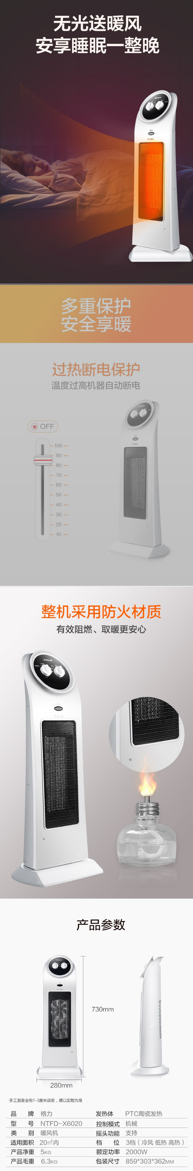 格力(GREE)取暖器家用摇头电暖器节能立式速热暖风机办公卧室立式电暖气NTFD-X6020机械款 自营