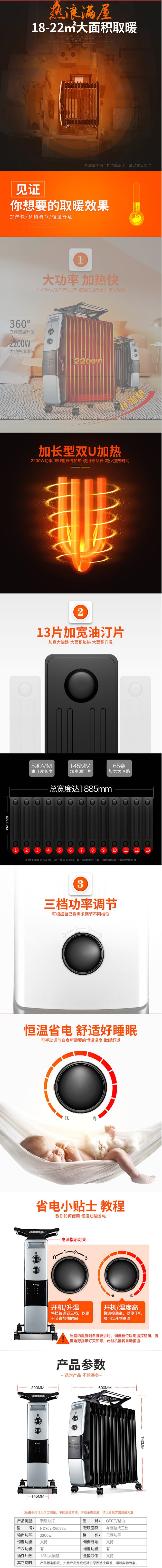 格力(GREE)油汀取暖器13片家用节能省电油丁电暖气片电暖器NDY07-X6026a 自营