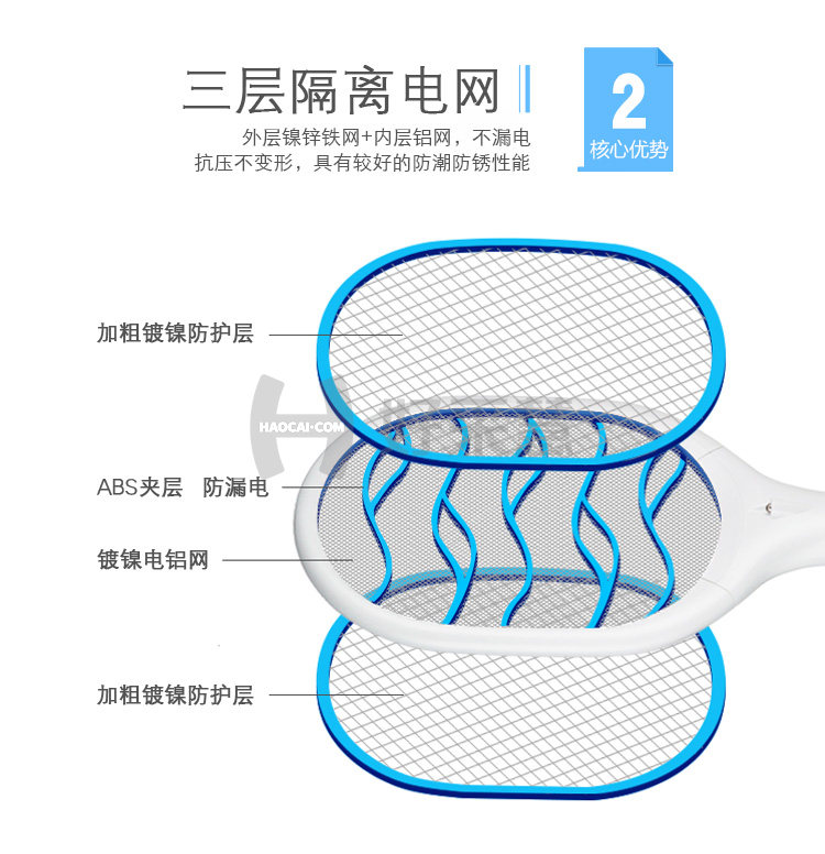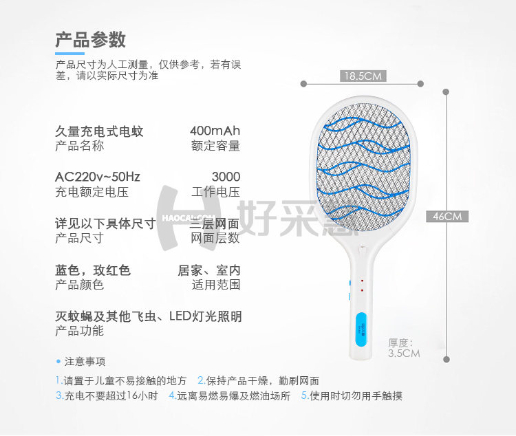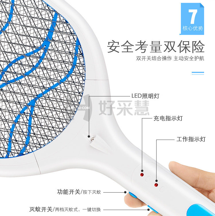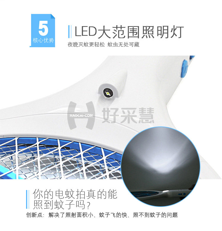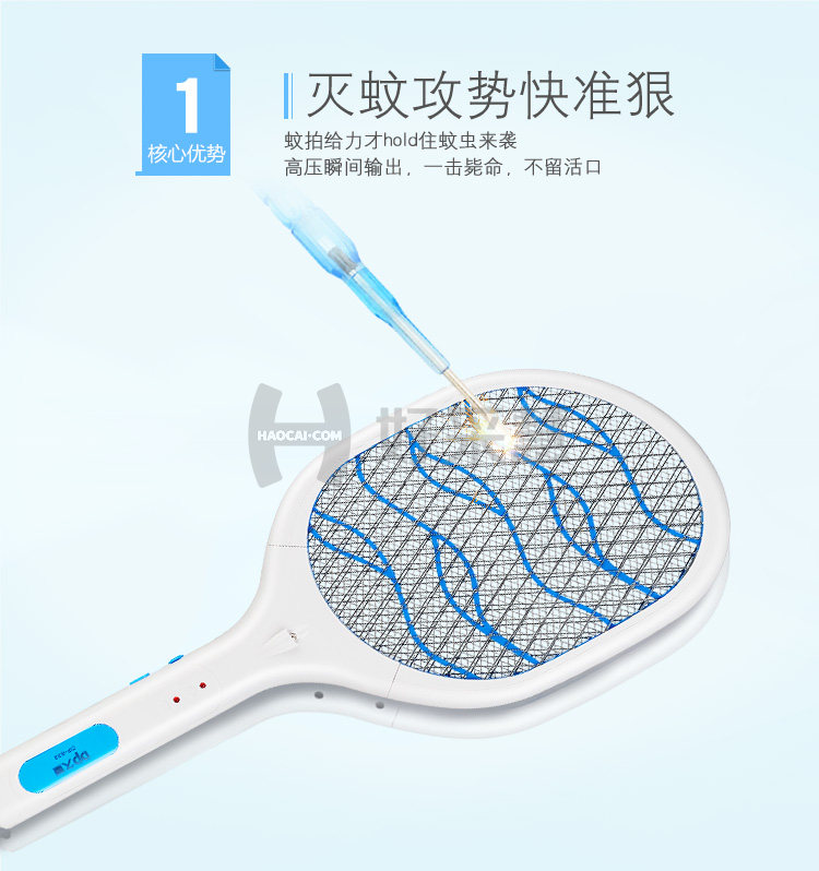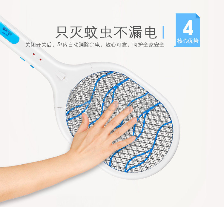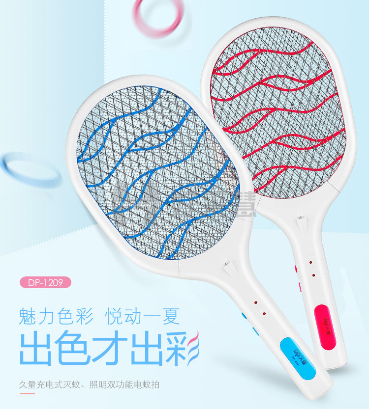 久量(DP)DP-1209电蚊拍充电式电池电驱蚊器灭蚊拍苍蝇拍带LED照明大网面3000V高压强力灭蚊蝇蓝色(单位:个) 自营