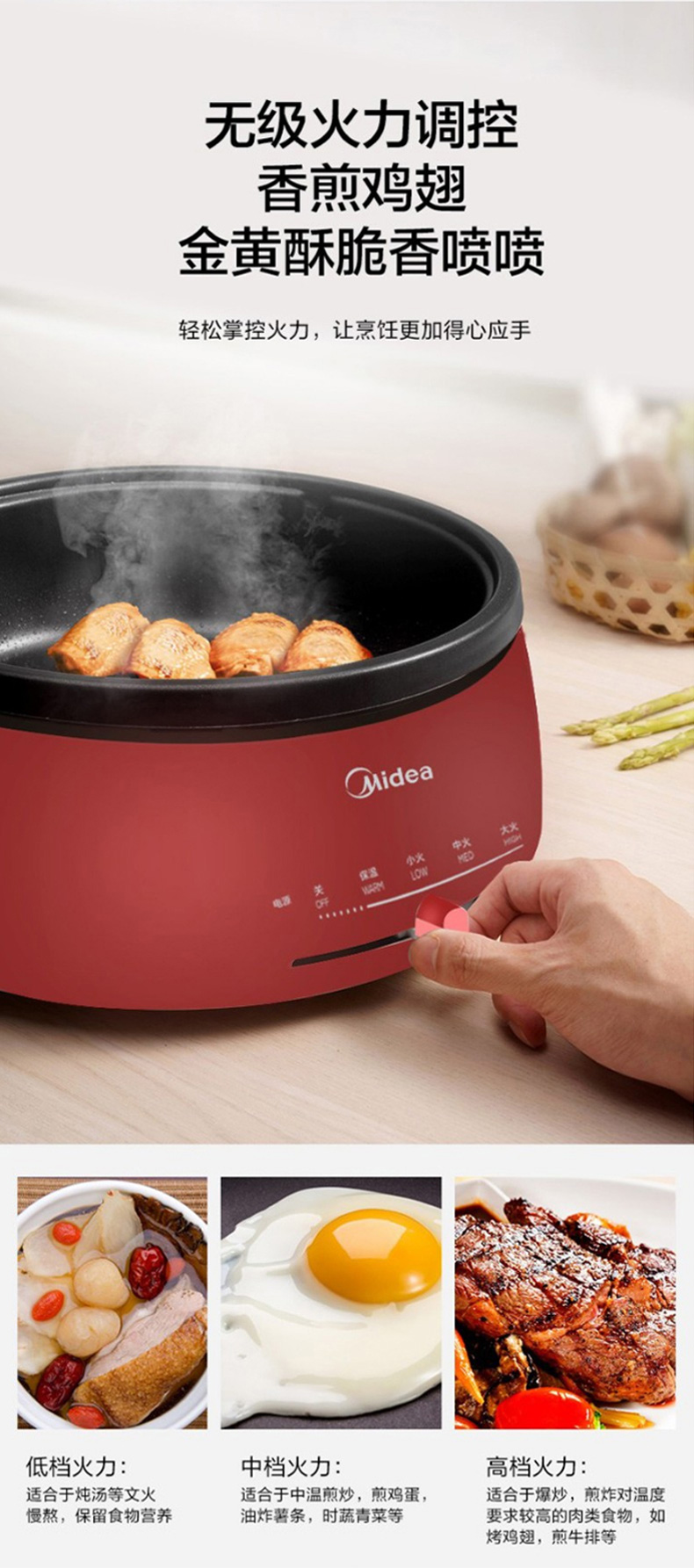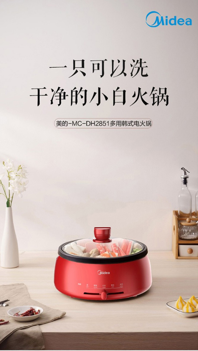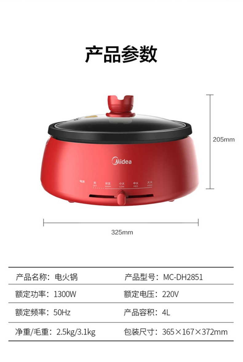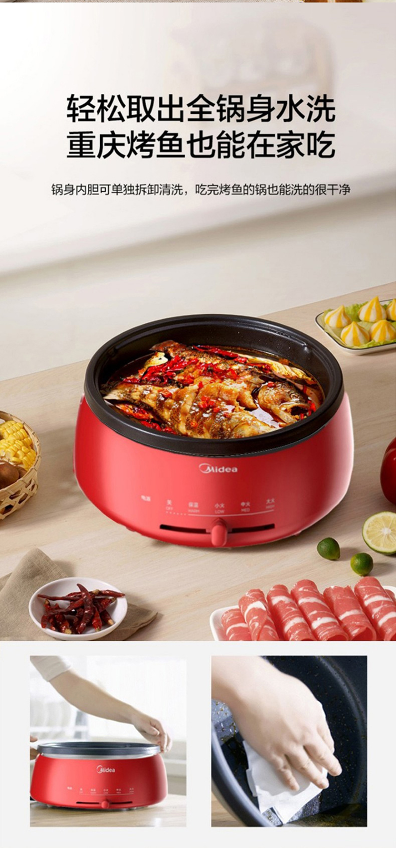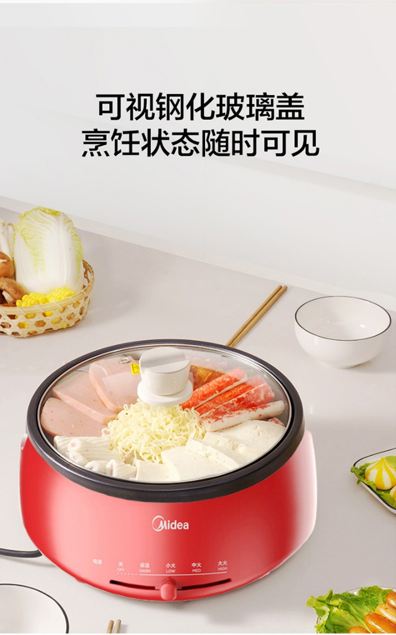 美的(Midea)电火锅家用多用途锅电炒锅电蒸锅多功能锅4L大容量电热锅商场同款DH2851 自营