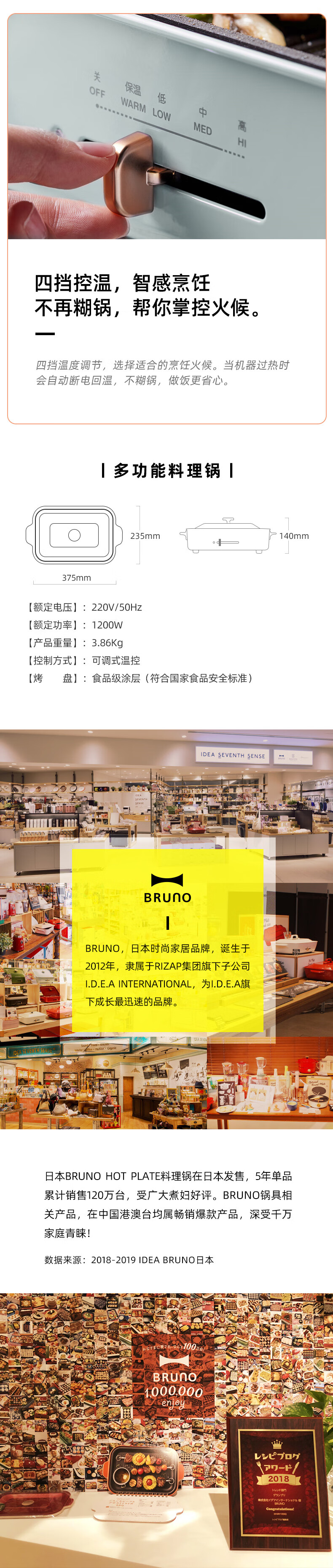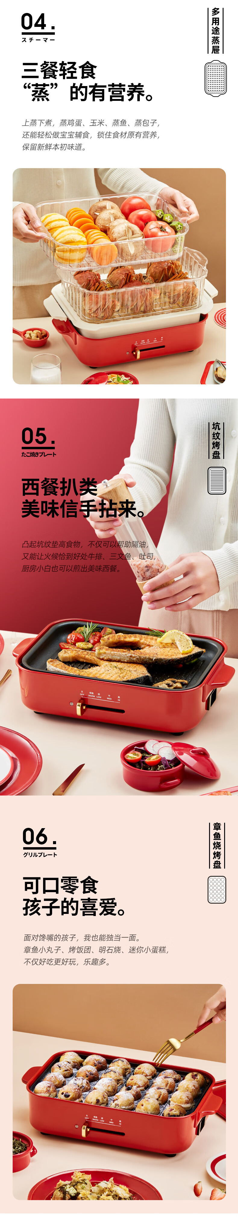 BRUNO日本多功能料理锅电炒锅电蒸锅电火锅电锅多功能锅火锅锅电煮锅多用途锅【复古红套装】 自营