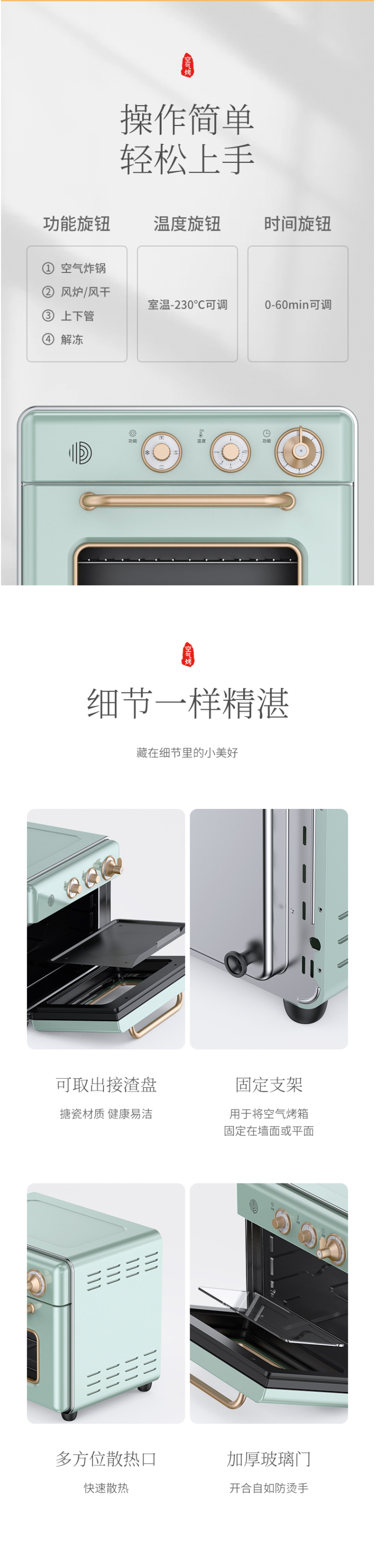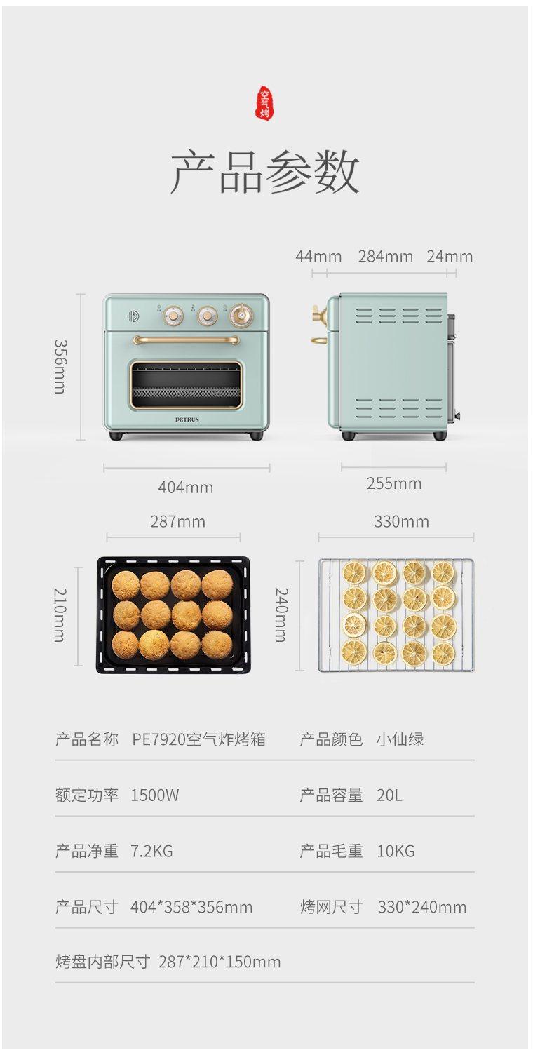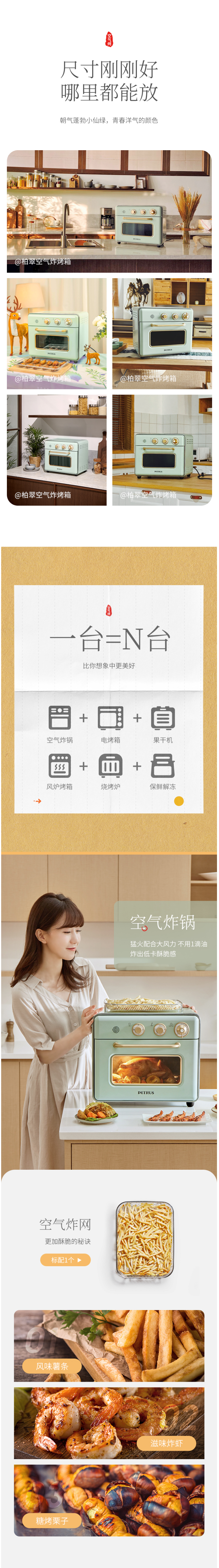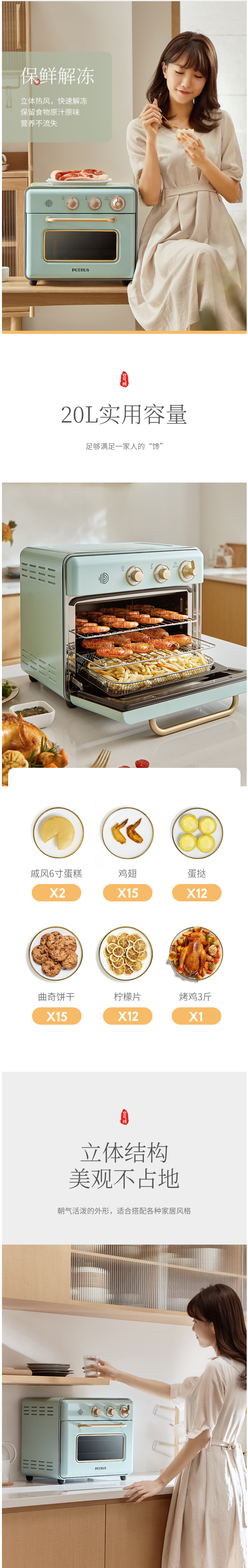 柏翠(petrus)空气炸锅烤箱一体机20L小型家用搪瓷内胆热风多功能烘焙PE7920 自营