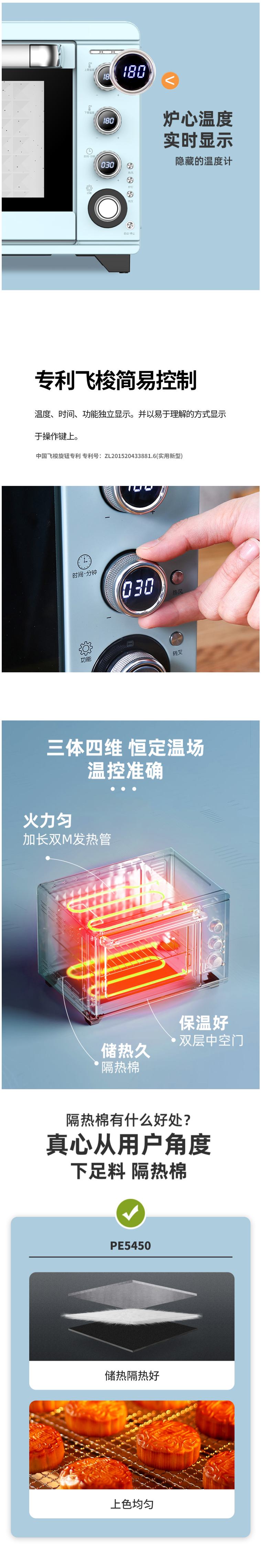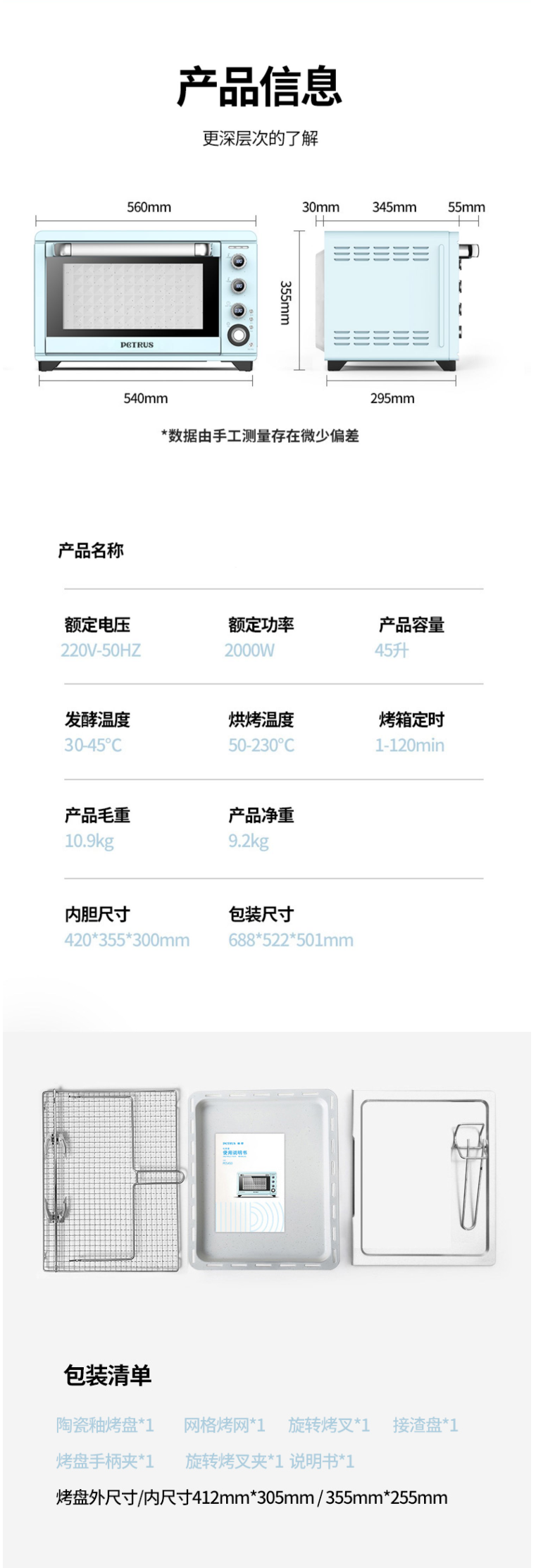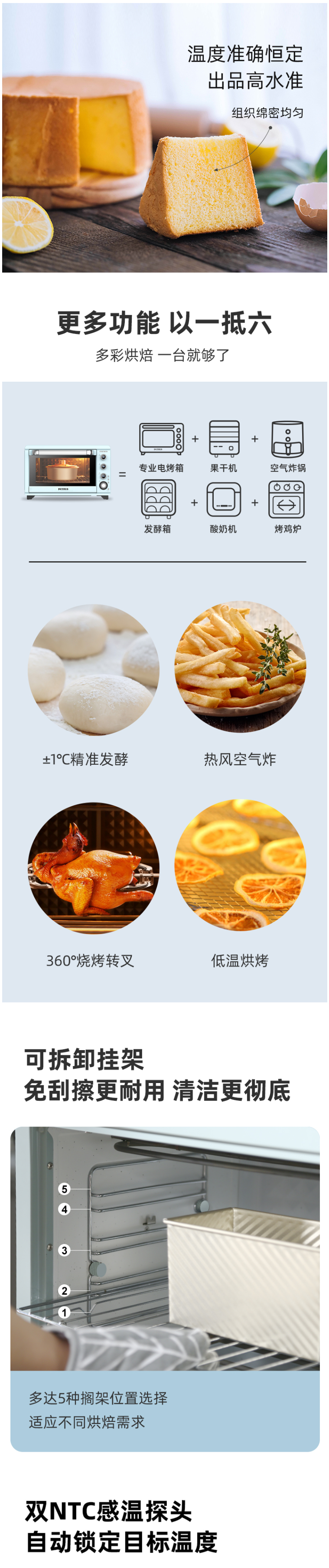 柏翠(petrus)电烤箱家用45升大容量多功能独立控温热风烤红薯陶瓷油内胆PE5450 自营