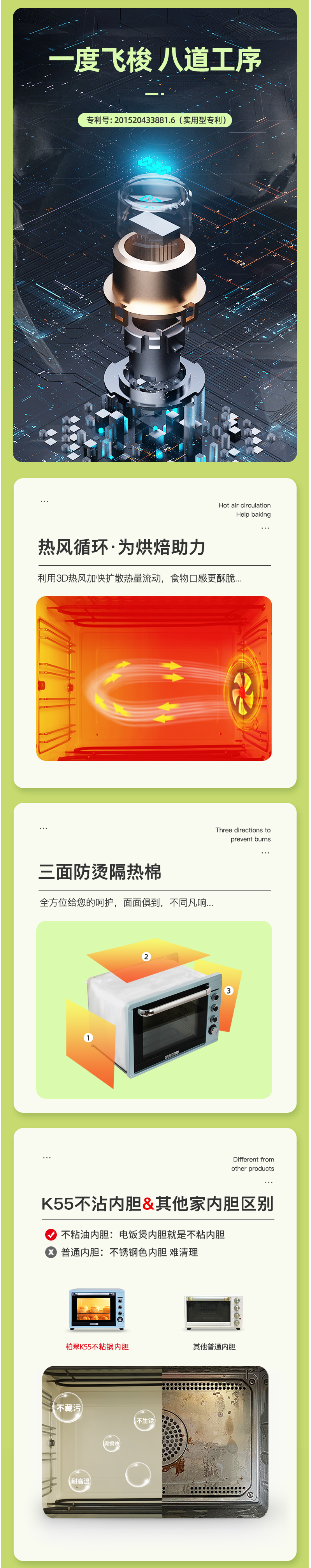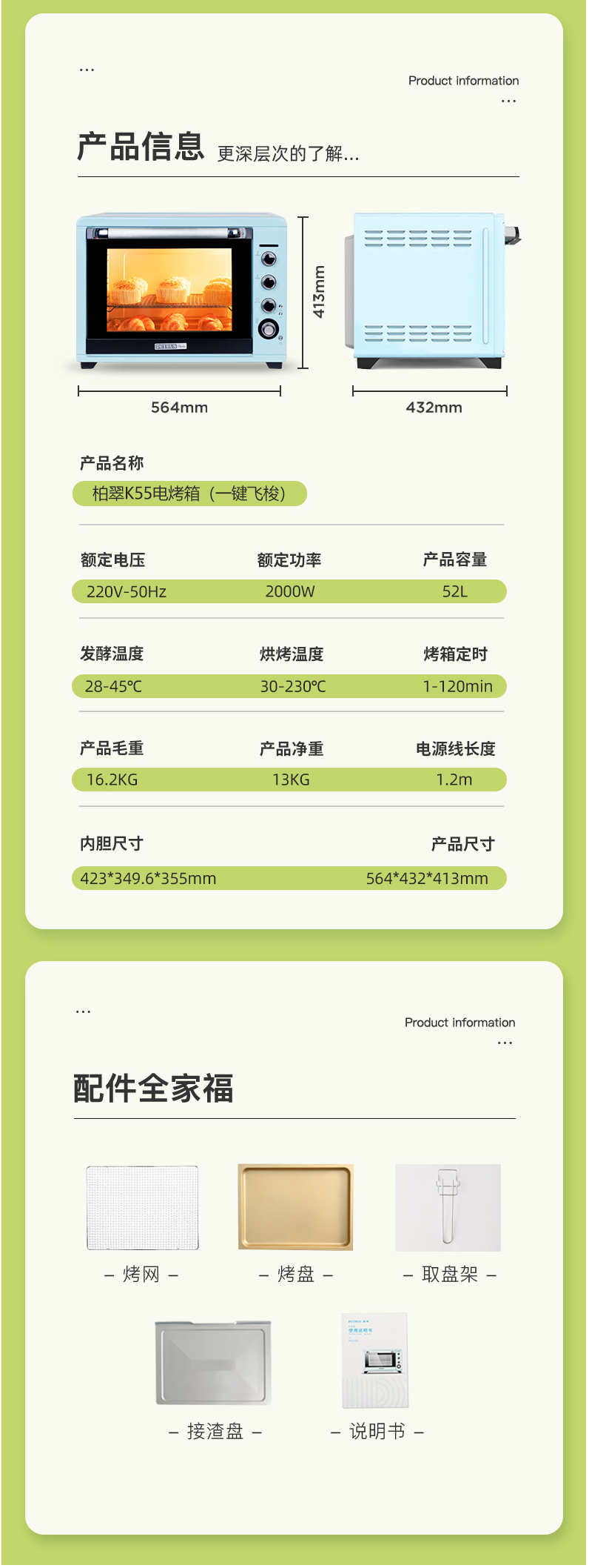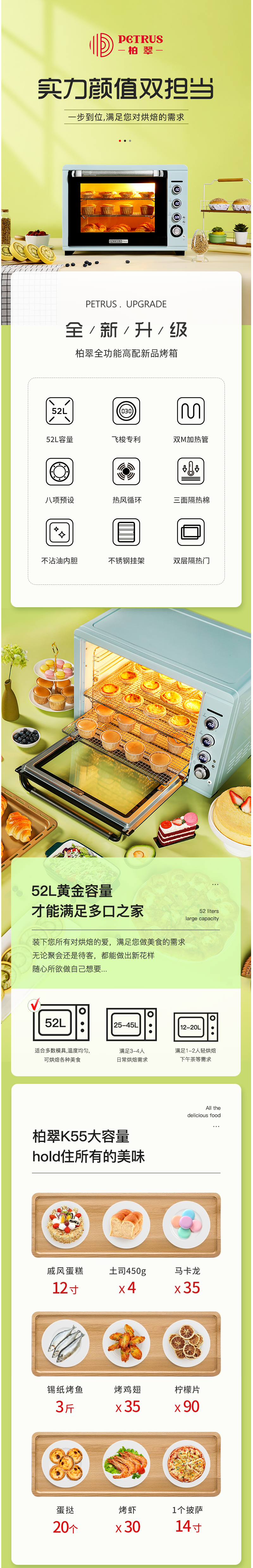 柏翠(petrus)K55电烤箱家用大容量52L商用私房烘焙多功能全自动烤箱小型52升柏翠K55烤箱 自营