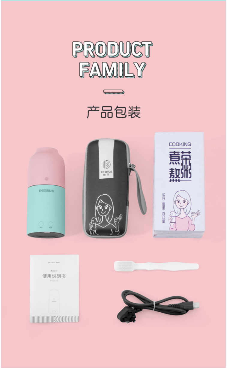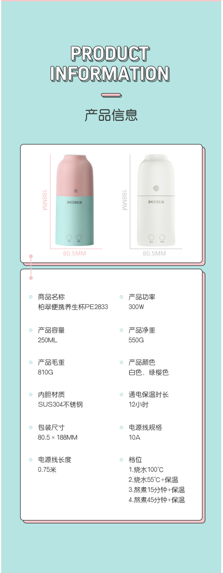 柏翠(petrus)迷你养生壶养生杯便携式多功能办公室家用旅行烧水壶小型速热杯PE2833 自营