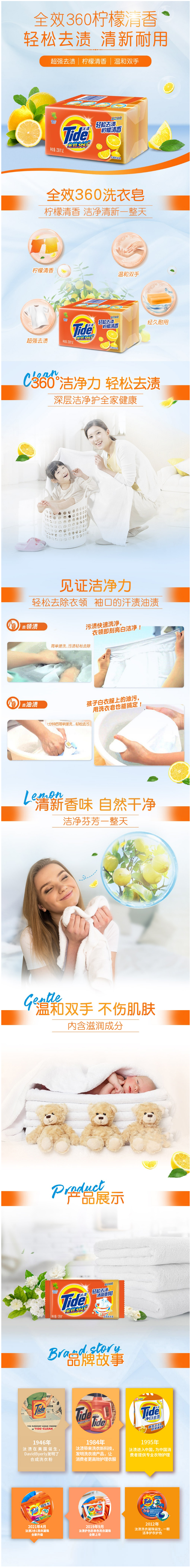 汰渍(Tide)全效洁净透明洗衣皂柠檬清香238*2块 自营