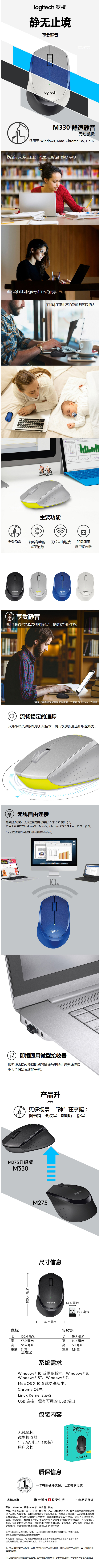 罗技M330无线静音鼠标黑色 自营