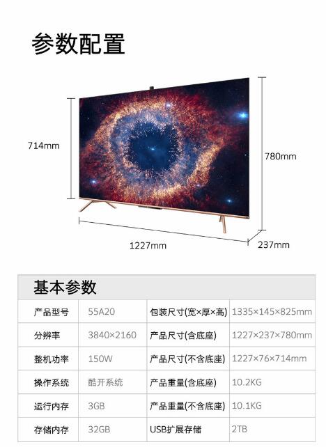 创维(SKYWORTH)55A2055英寸4K超高清智慧屏AI摄像头3+32G护眼超薄全面屏声控液晶智能电视 自营