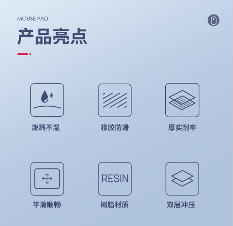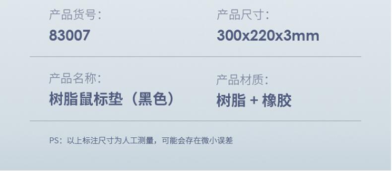 得力(deli)300*220mm耐磨树脂鼠标垫办公游戏通用办公用品黑色83007 自营