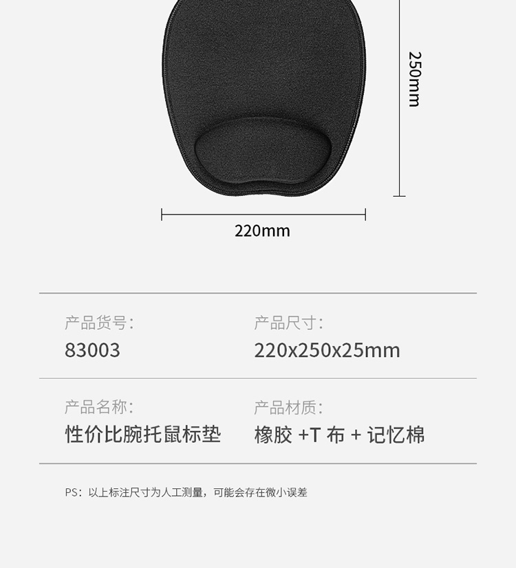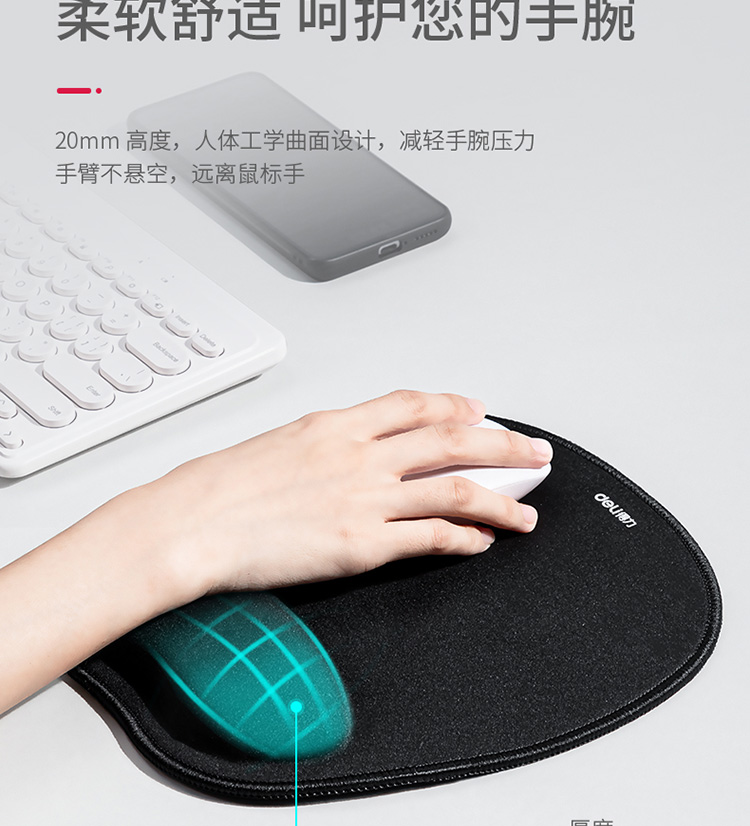 得力(deli)83003舒适记忆绵腕托鼠标垫(蒲扇状)220mm*250mm*25mm