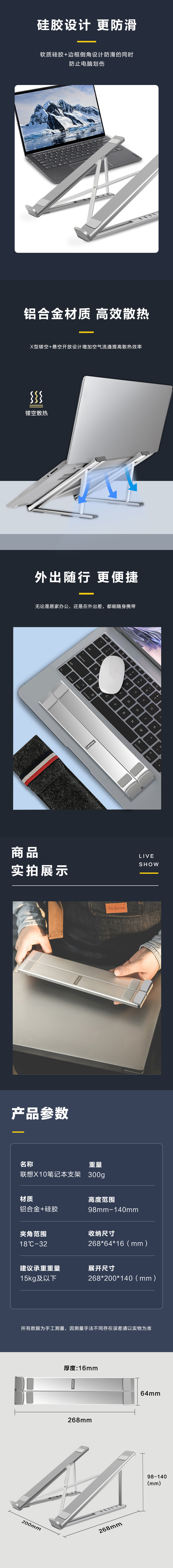 联想(Lenovo)笔记本支架电脑散热支架笔记本散热器6档调节 自营