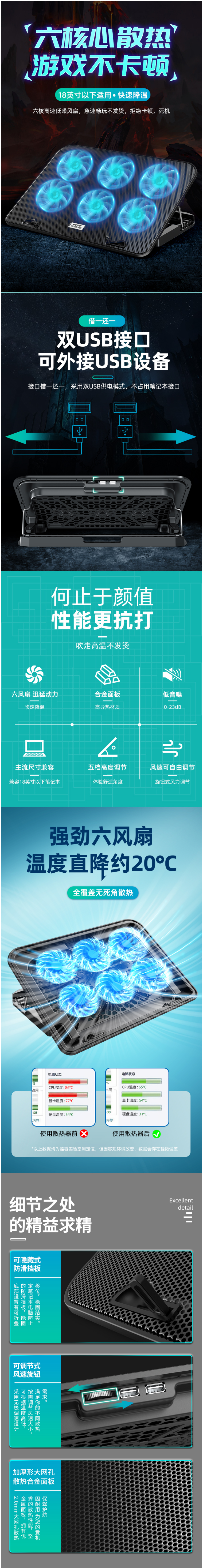 酷睿冰尊(ICECOOREL)A9黑色笔记本散热器可调速适用17英寸以下
