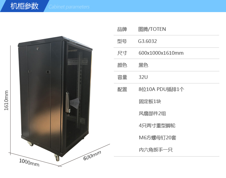 图腾(TOTEN)G36032网络机柜32U加厚机柜服务器机柜19英寸网格门机柜UPS电源 自营