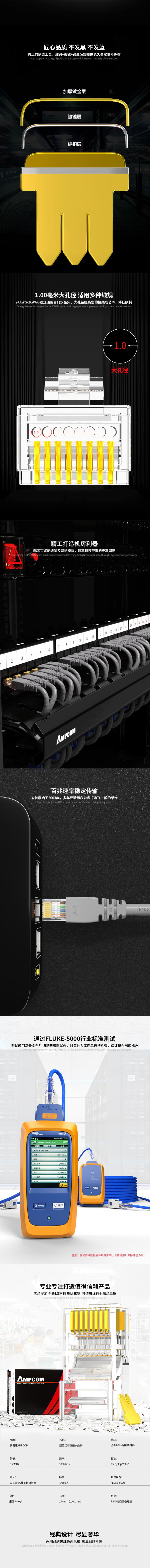 山泽(SAMZHE)FK-6100六类千兆工程专用水晶头镀金RJ45水晶头CAT6类8芯8P8C电脑网络线接头100个/盒