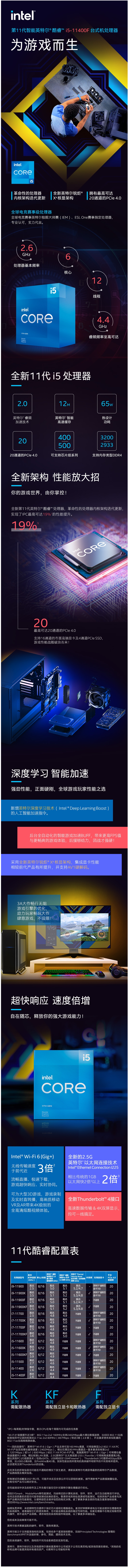 英特尔(Intel)i5-11400F6核12线程盒装CPU处理器 自营