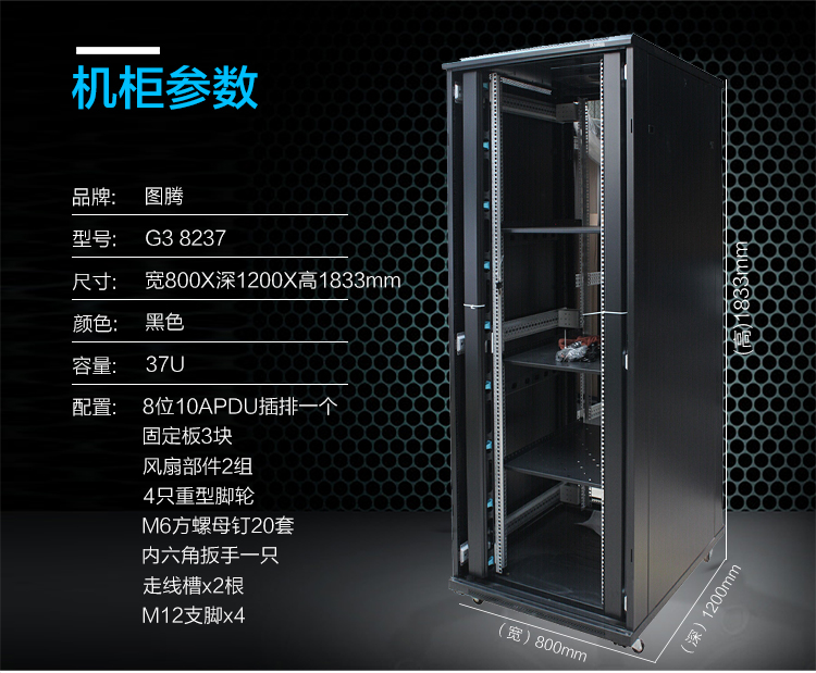 图腾(TOTEN)G38237网络机柜37U加厚机柜服务器机柜网孔门机柜19英寸机箱机柜