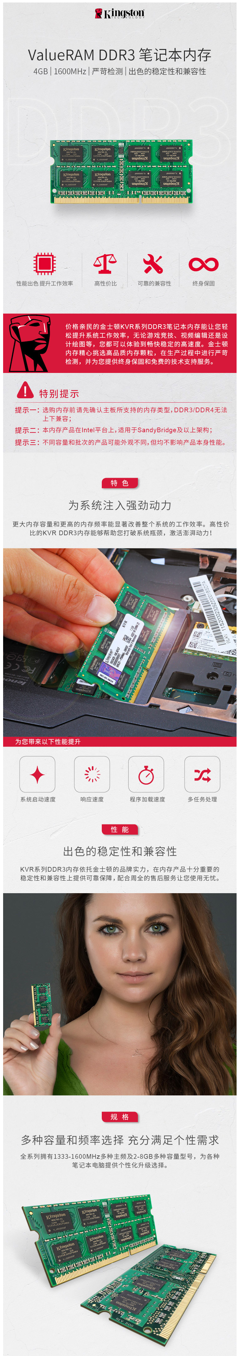 金士顿(Kingston)4GBDDR31600笔记本内存条