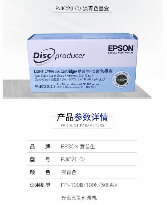 爱普生(EPSON)PJIC2(LC)淡青色墨盒适用于(PP-100III/100N/50II系列光盘印刷刻录机) 自营