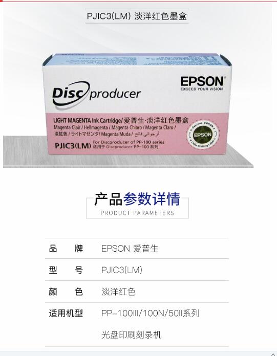 爱普生(EPSON)PJIC3(LM)淡洋红色墨盒适用于(PP-100III/100N/50II系列光盘印刷刻录机) 自营