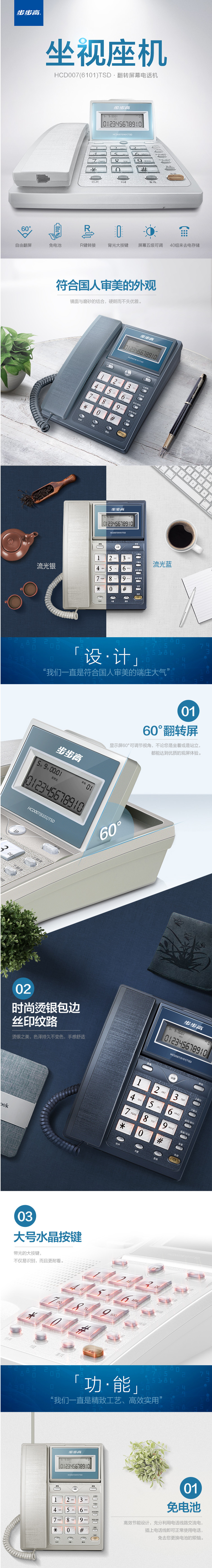 步步高(BBK)HCD6101电话机座机流光银 自营