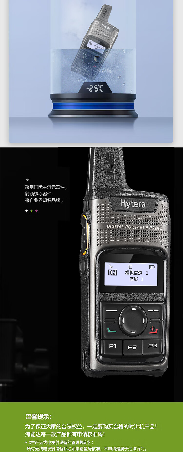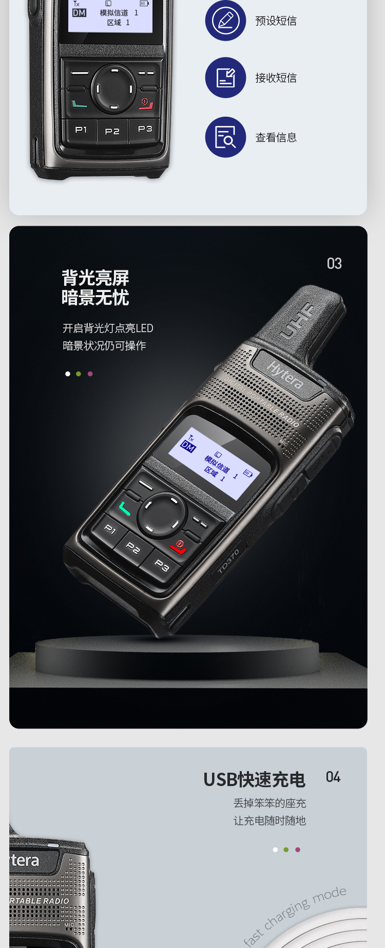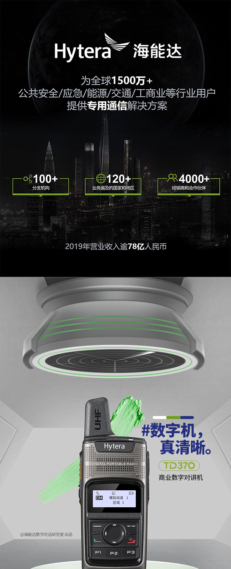 海能达(Hytera)TD370商业数字对讲机可USB充电2000mAh锂电池 自营