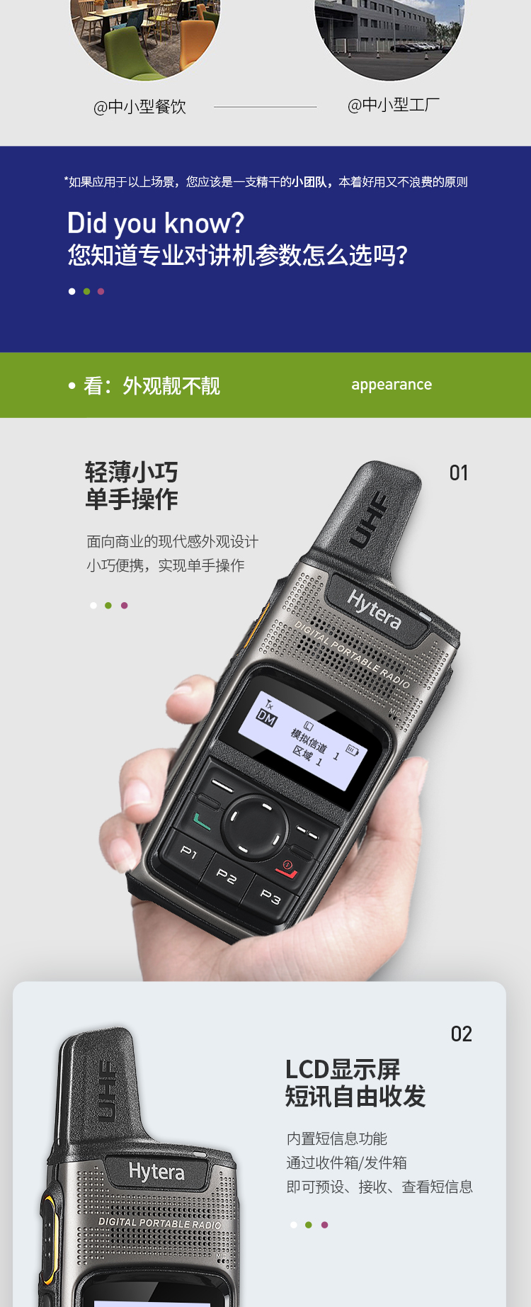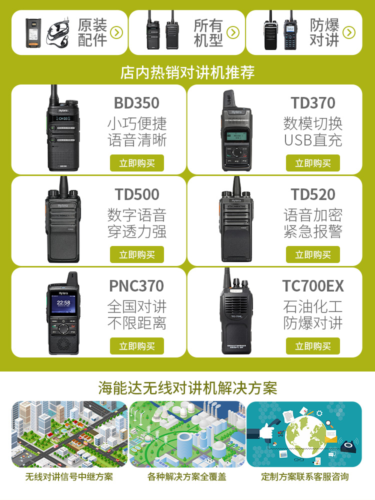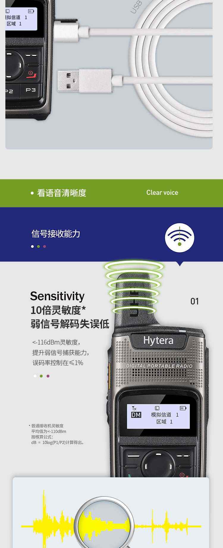 海能达(Hytera)TD370商业数字对讲机可USB充电2000mAh锂电池 自营
