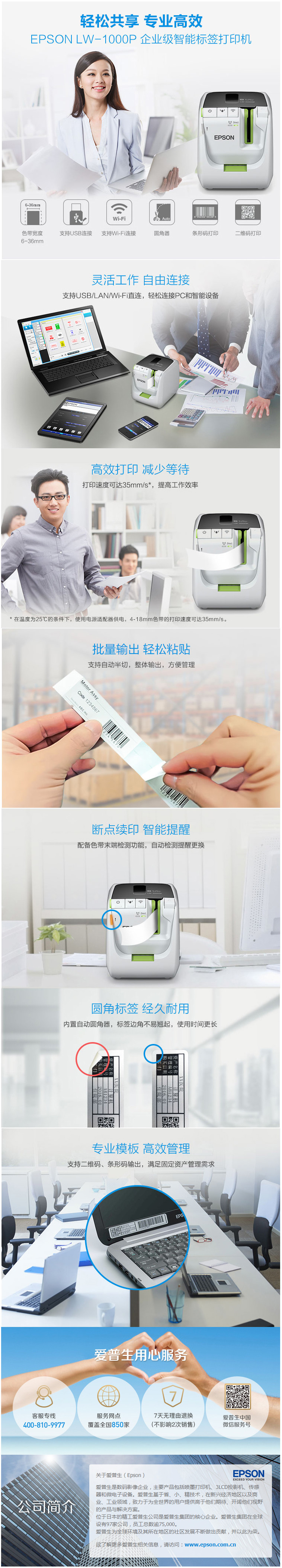 爱普生LW-1000P热敏/热转印黑白打印机打印便携式标签打印机 自营