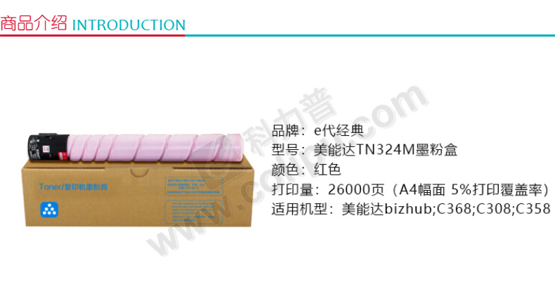 e代经典美能达TN324/TN224M墨粉盒红色适用柯尼卡美能达bizhubC454C308;C258;C368;复印机碳粉TN324红色适用柯尼卡美能达bizhubC454C308;C258;C368;复印机碳粉CLP美能达TN324/TN224M墨粉盒红色适用柯尼卡美能达bizhubC454C308;C258;C368;复印机碳粉 自营