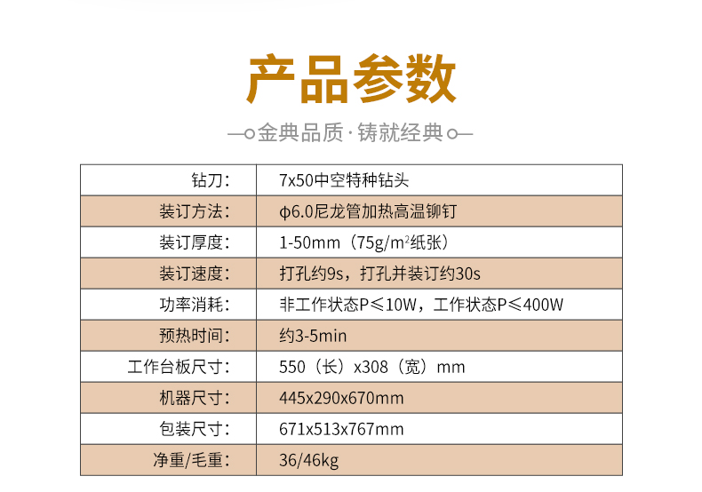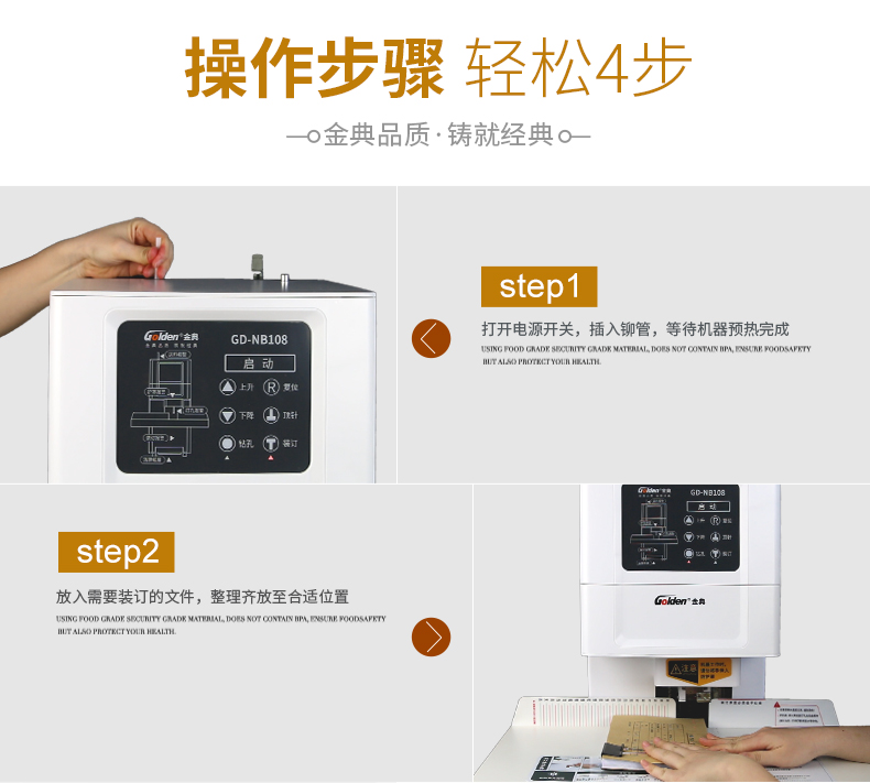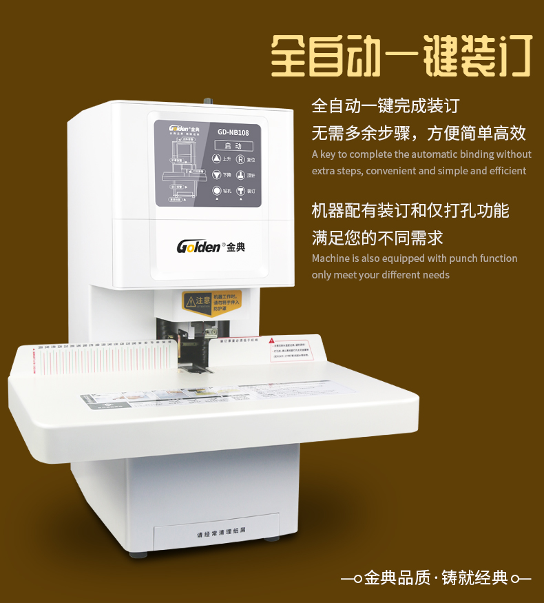 金典(Golden)GD-NB108装订机财务凭证装订机全自动打孔装订无需人工一键装订 自营