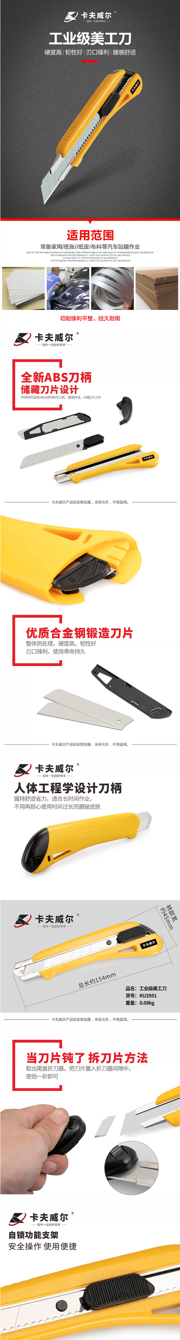 卡夫威尔工业级美工刀多功能美工刀裁纸刀办公用削笔刀壁纸刀大号18mmKU2951 自营