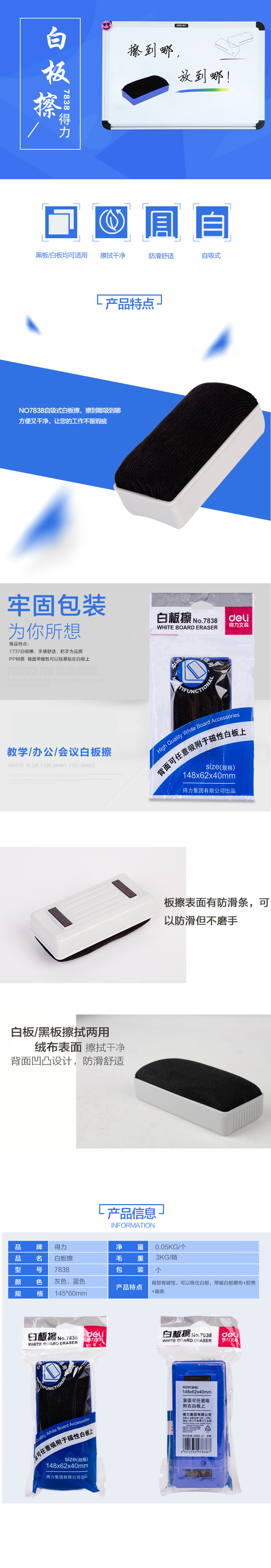 得力7838白板擦画板擦白板擦黑板擦得力白板擦148*62*40mm 自营