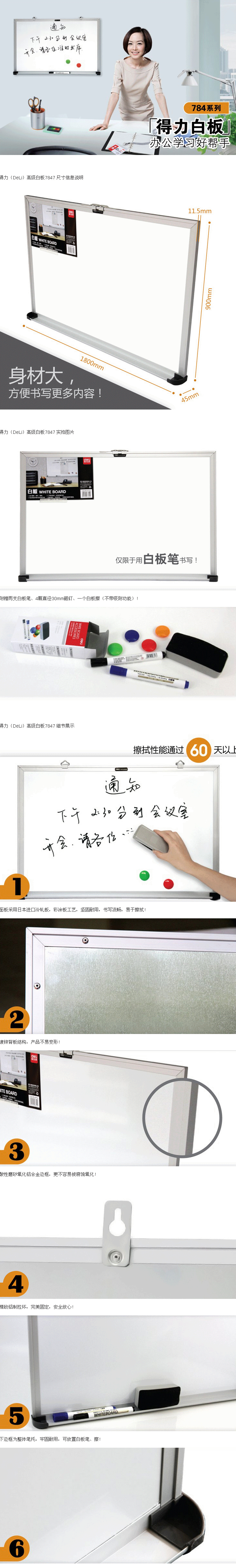 得力7847挂式大白板1800×900mm演示会议培训磁性办公留言板 自营