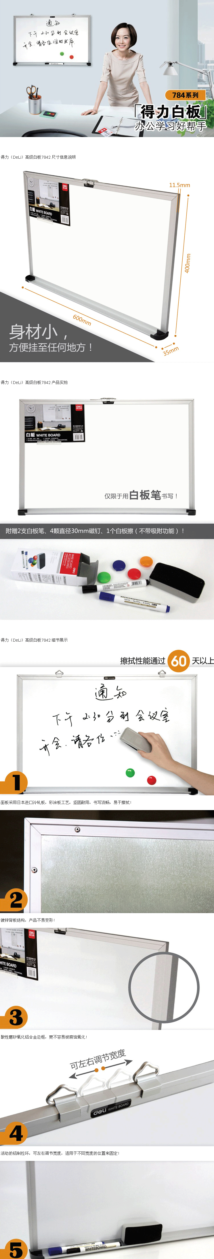 得力7842办公书写白板磁性白板展示白板家用儿童600*400mm 自营