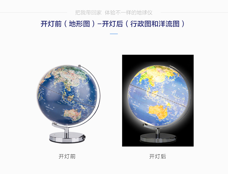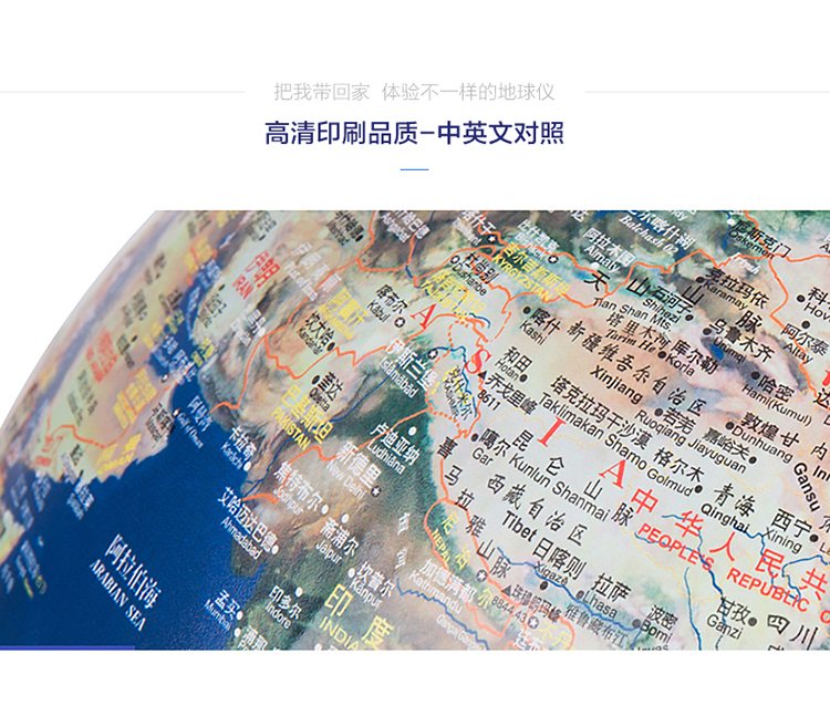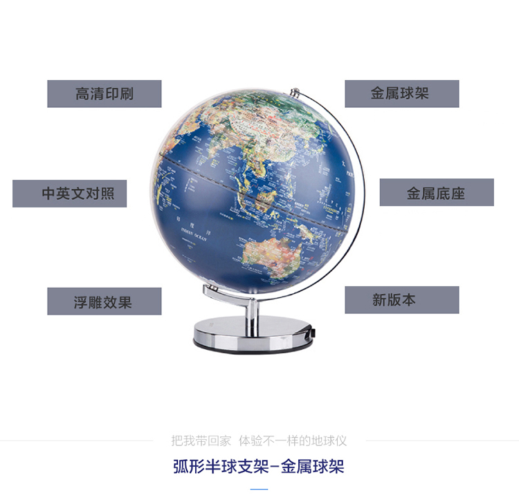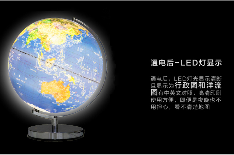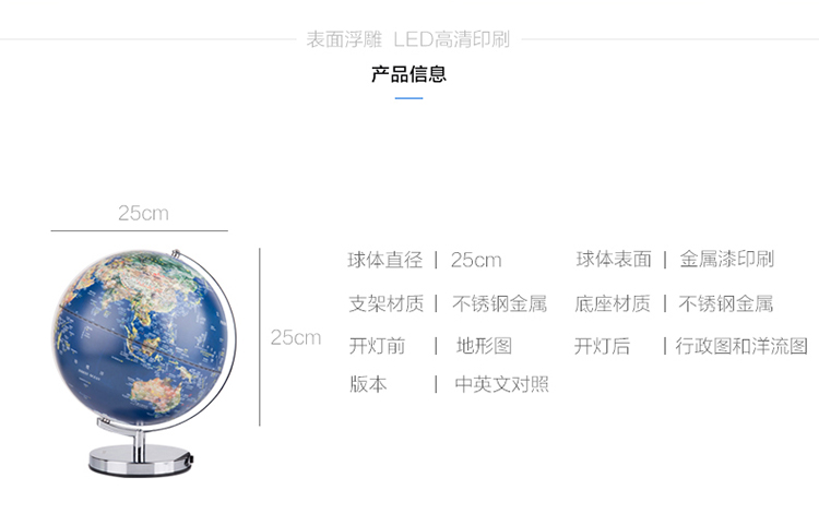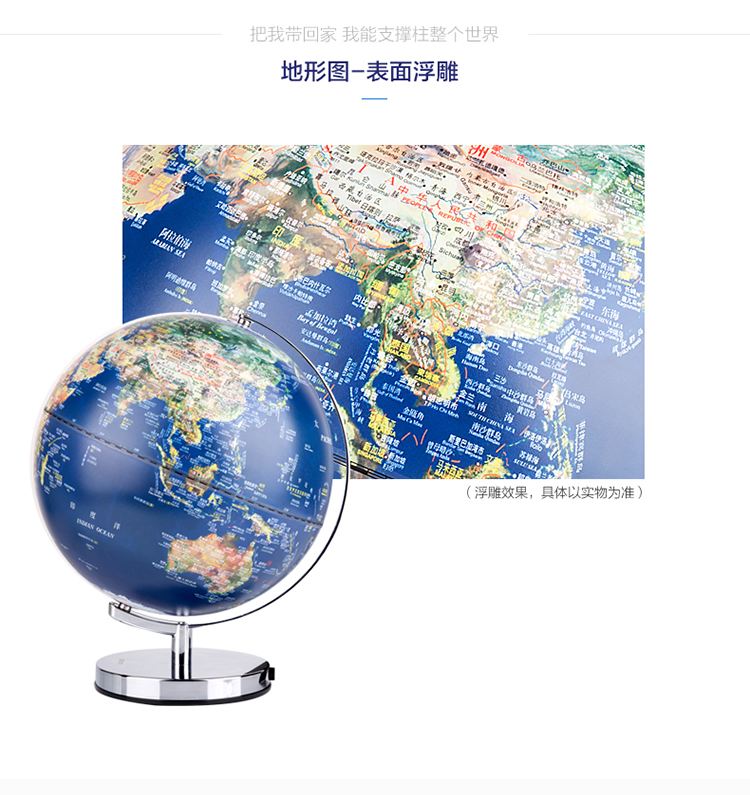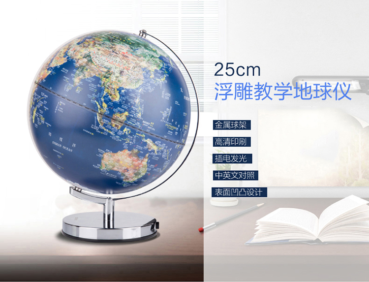 得力(deli)2164LED灯立体浮雕地球仪/标准教学高清中英文对照(25cm) 自营