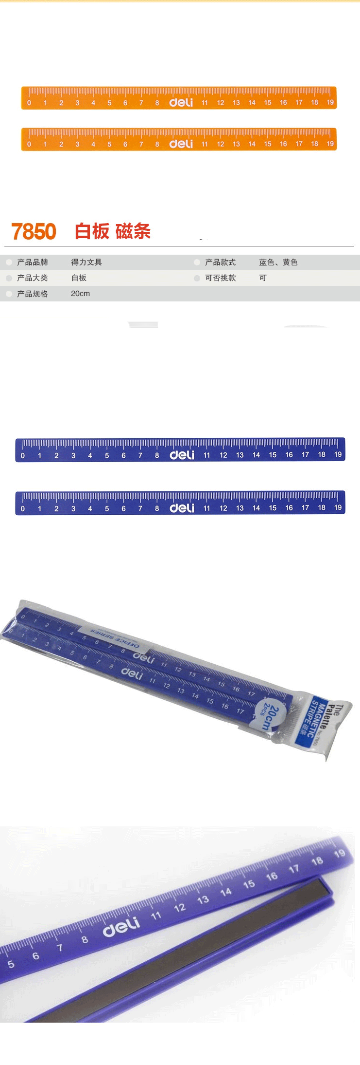 得力7850磁条白板用磁条磁粒直2支装20cm白板尺办公文具 自营