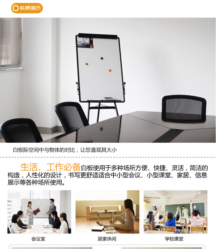 DELI得力7892挂纸白板磁性白板夹纸白板三角架白板送板擦笔磁扣白板白板一块 自营