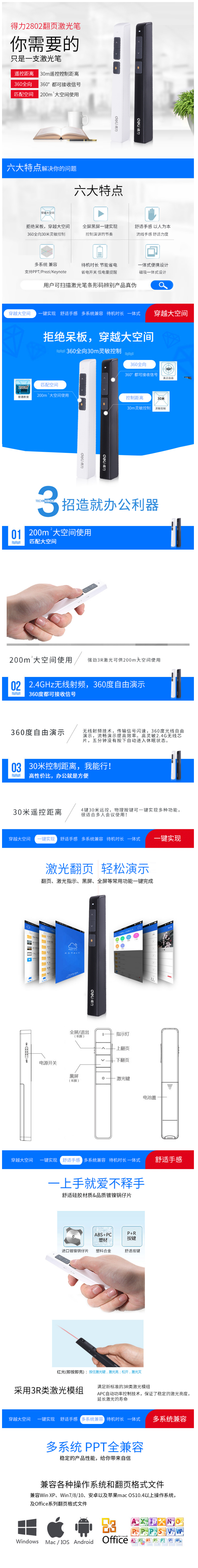 得力(deli)2802激光笔PPT激光翻页笔无线演示课件笔360度控制红光黑色 自营